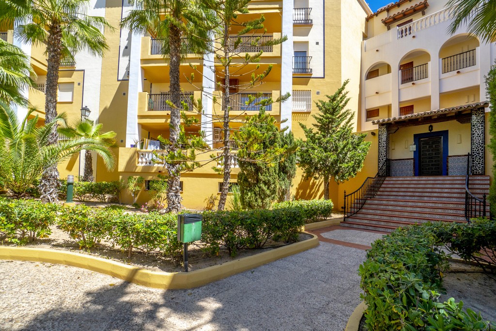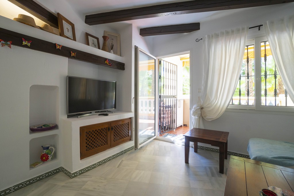 Vakker leilighet på 77 m2 i første etasje vendt mot sør, som ligger i den vakre urbanisasjonen Residencial Aldea del Mar, kun 300 meter fra Los Locos stranden.