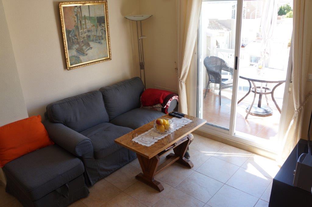 I Altos de La Bahia Fase har vi for salg en fin toppleilighet på 55 m2. Leiligheten ligger flott til rett nedenfor fellesområdet med basseng. Boligen består av 2 soverom med garderobeskap, bad med varmekabler, stue, spisestue og kjøkken.