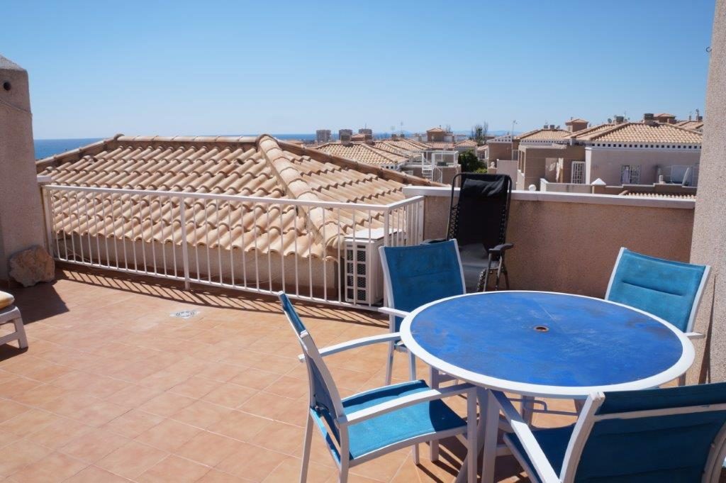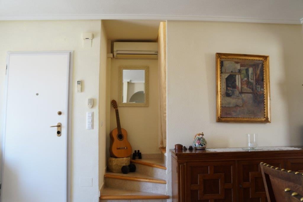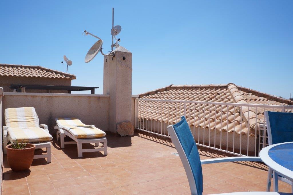 Fra stuen er det trapp opp til den private takterrassen på 25 m2. Her kan du nyte solen hele dagen og ikke minst den flotte utsikten. Leiligheten selges møblert og med aircondition så her kan man flytte rett inn.