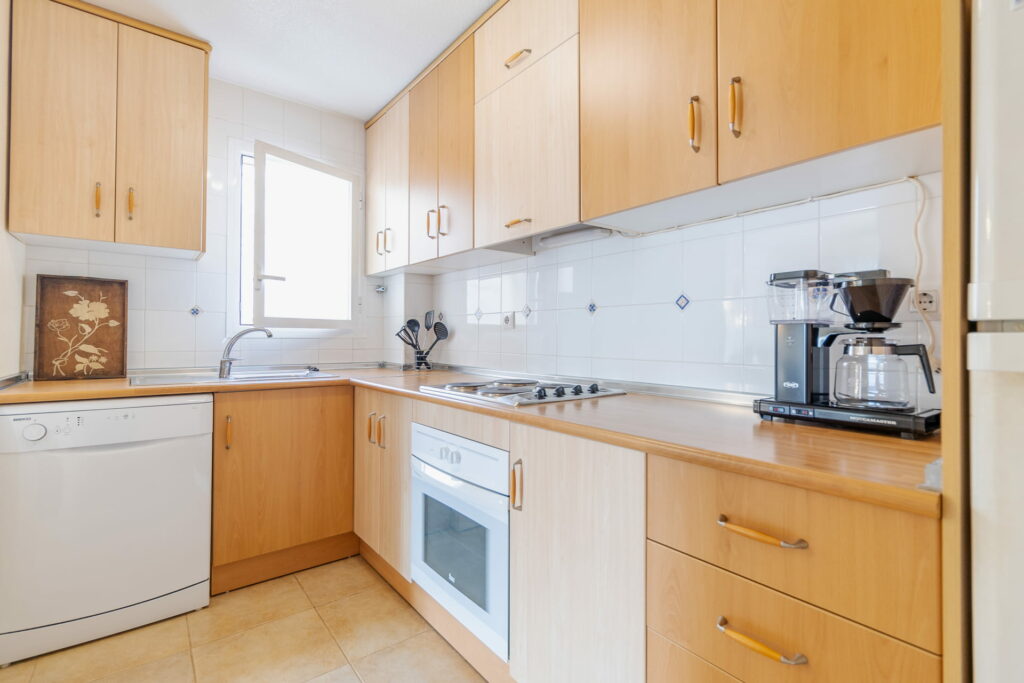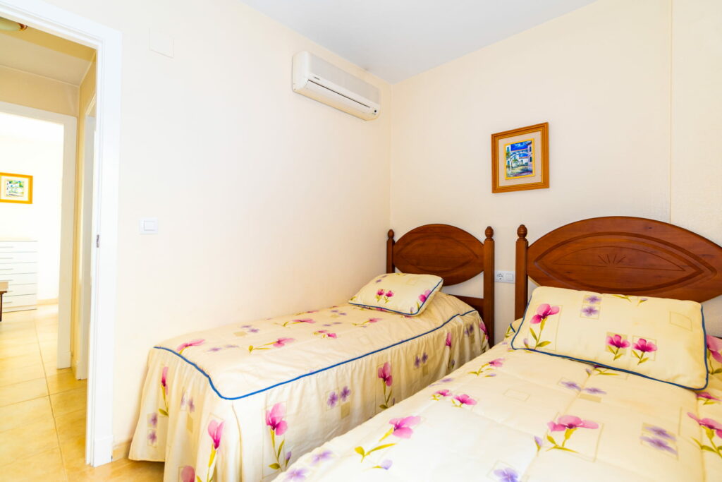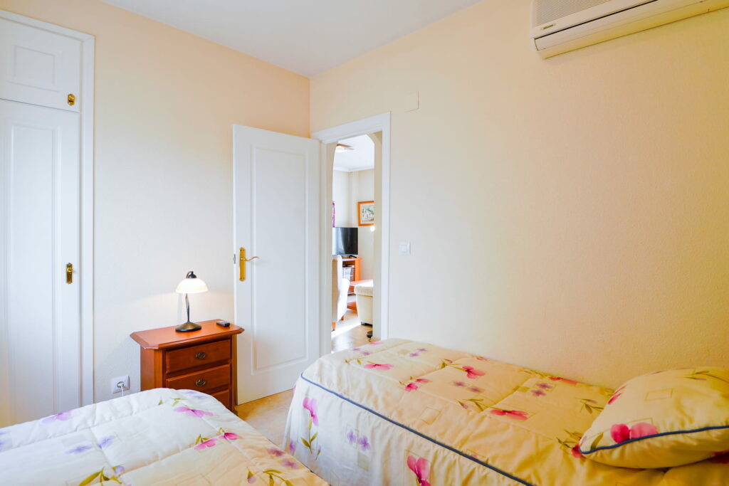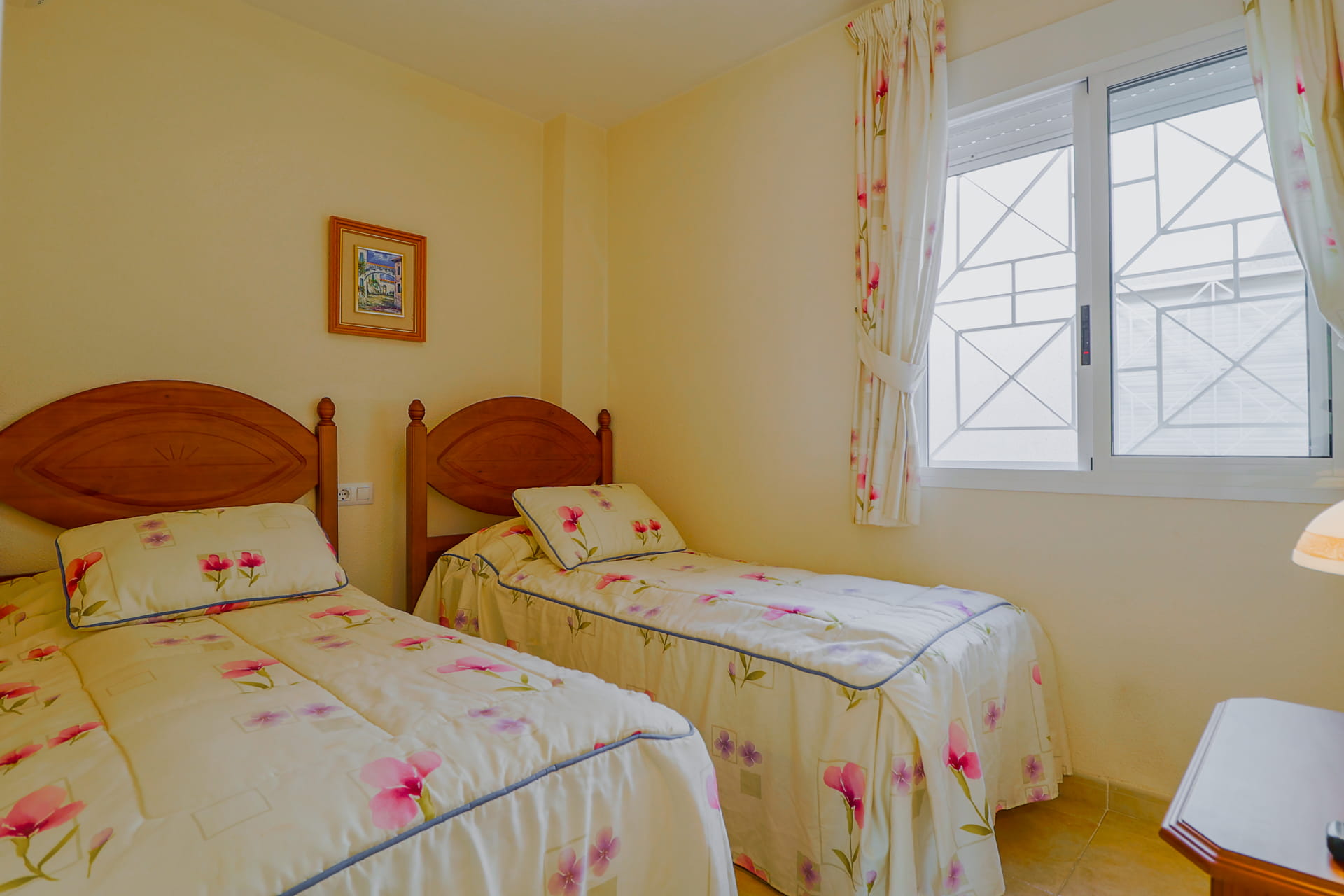 Denne fine toppleiligheten på 62 m2 har 2 soverom,1 bad, åpen kjøkken løsning og stue med utgang til en terrasse med utsikt over bassenget.