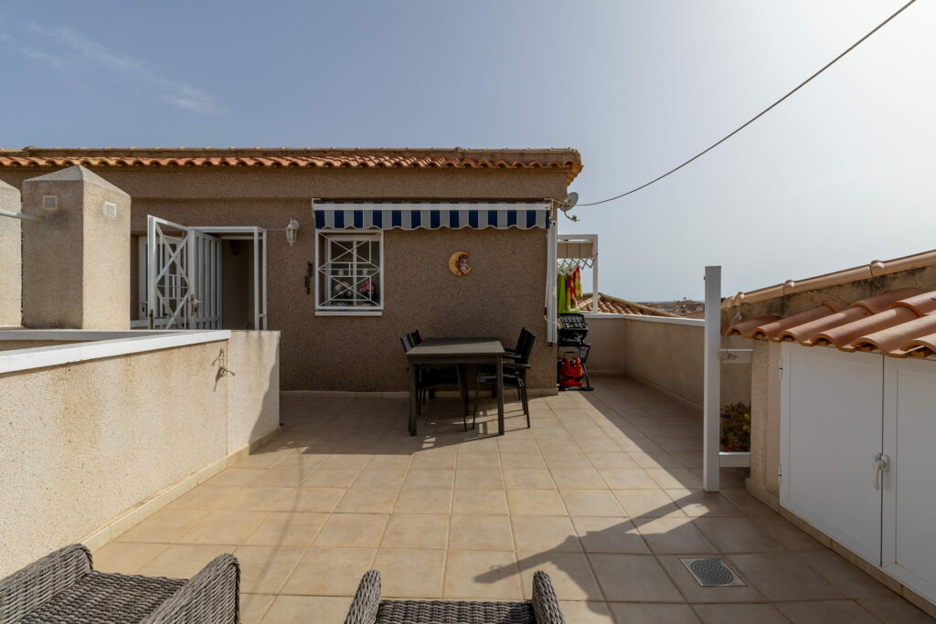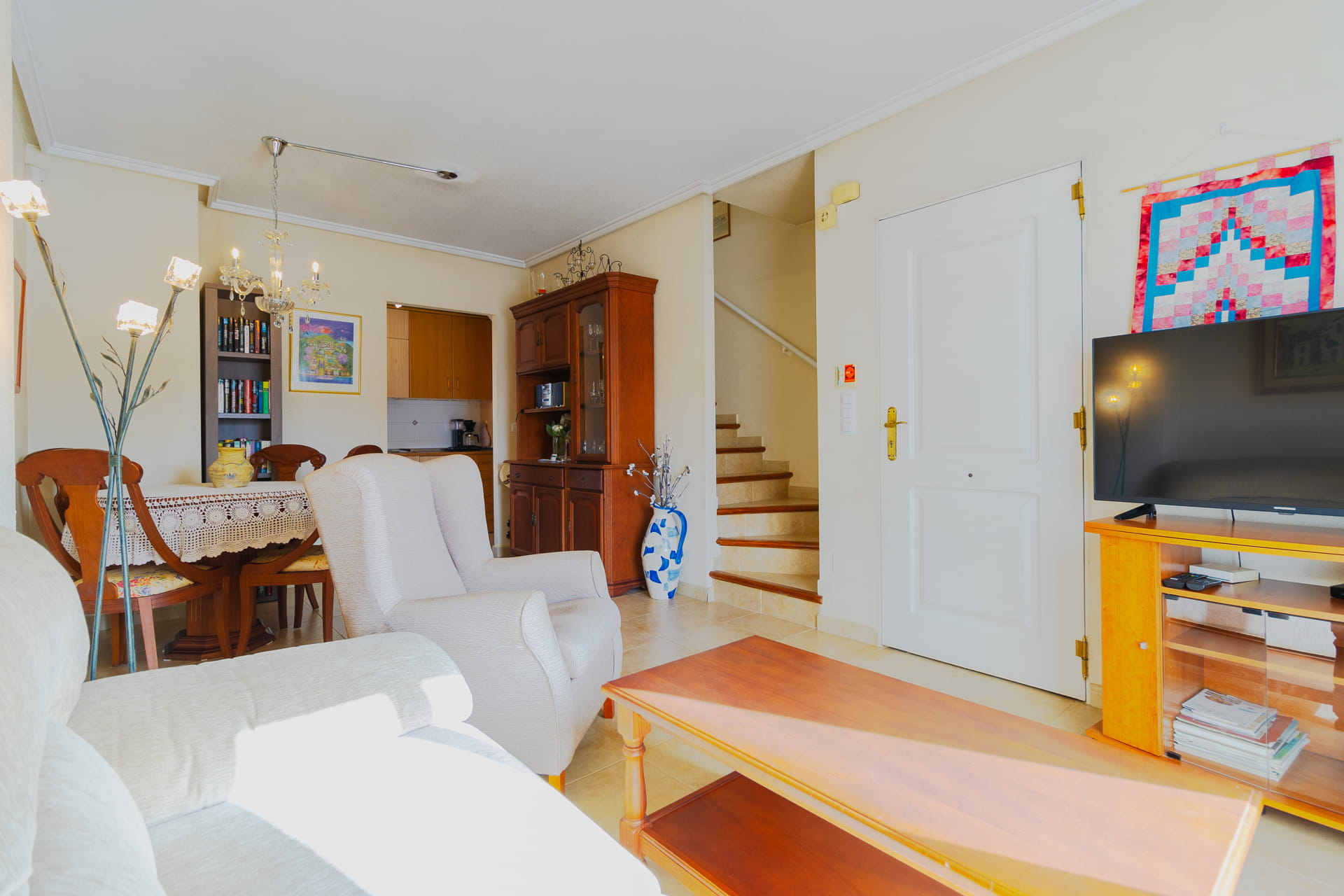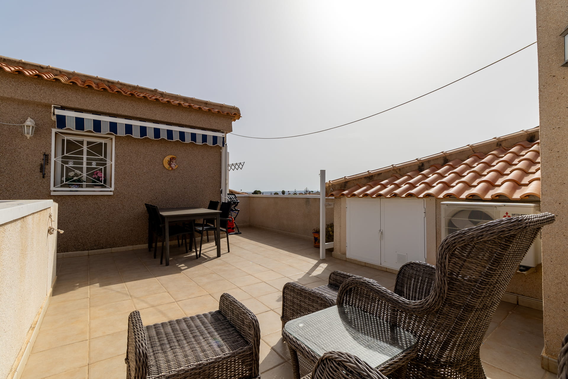 Fra stuen er det en trapp opp til en flott solrik takterrasse på 25 m2 med utsikt over bassenget og Middelhavet.