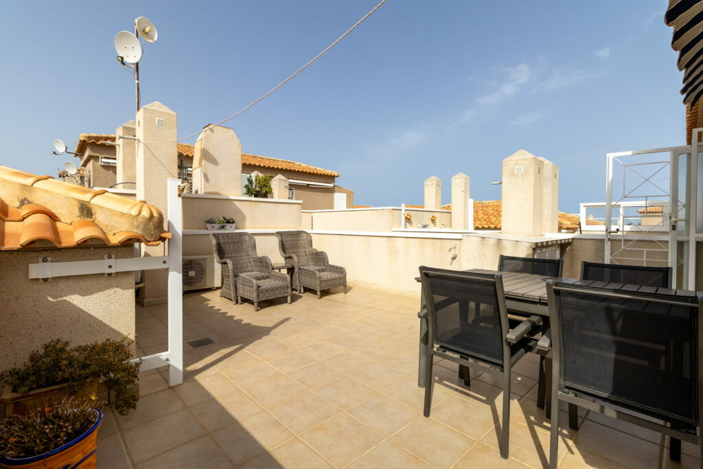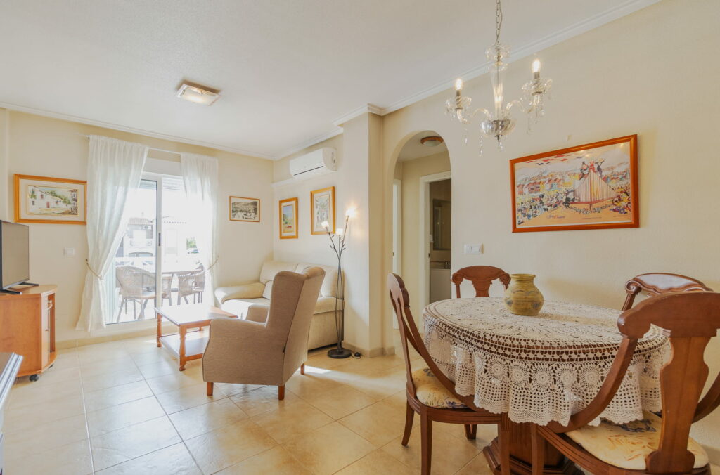 Det er god bussforbindelse til både sentrum av Torrevieja og til La Mata. Det er en hyggelig spasertur langes promenaden på omkring 45 minutter til Torrevieja sentrum. Dette er et flott område både for ferieturister og fastboende.