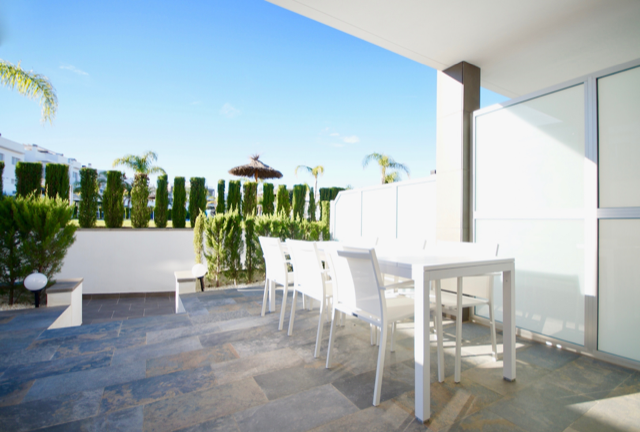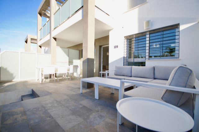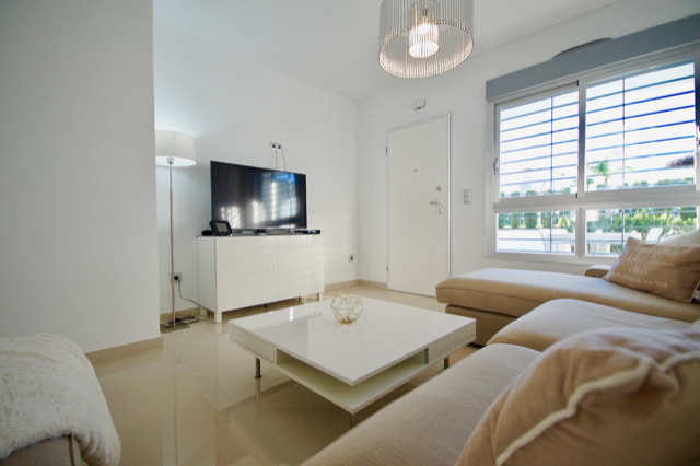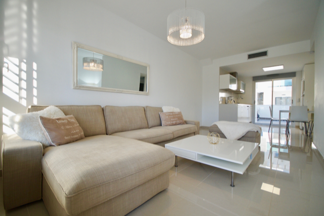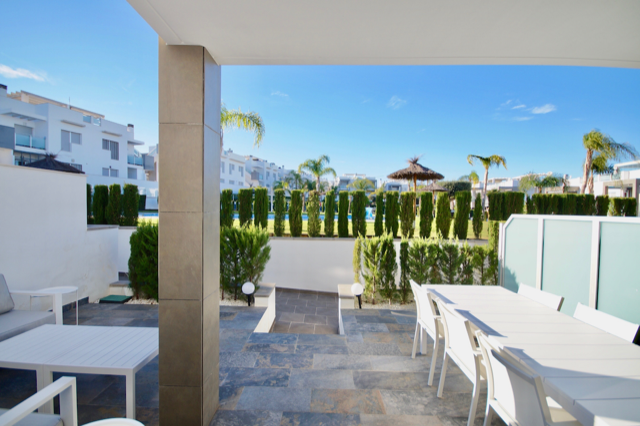 Denne fine leiligheten har to fantastiske terrasser, hvorav den ene har ettermiddags- og kveldssol foran bassengområdet og på baksiden en hvor du kan nyte morgensolen.