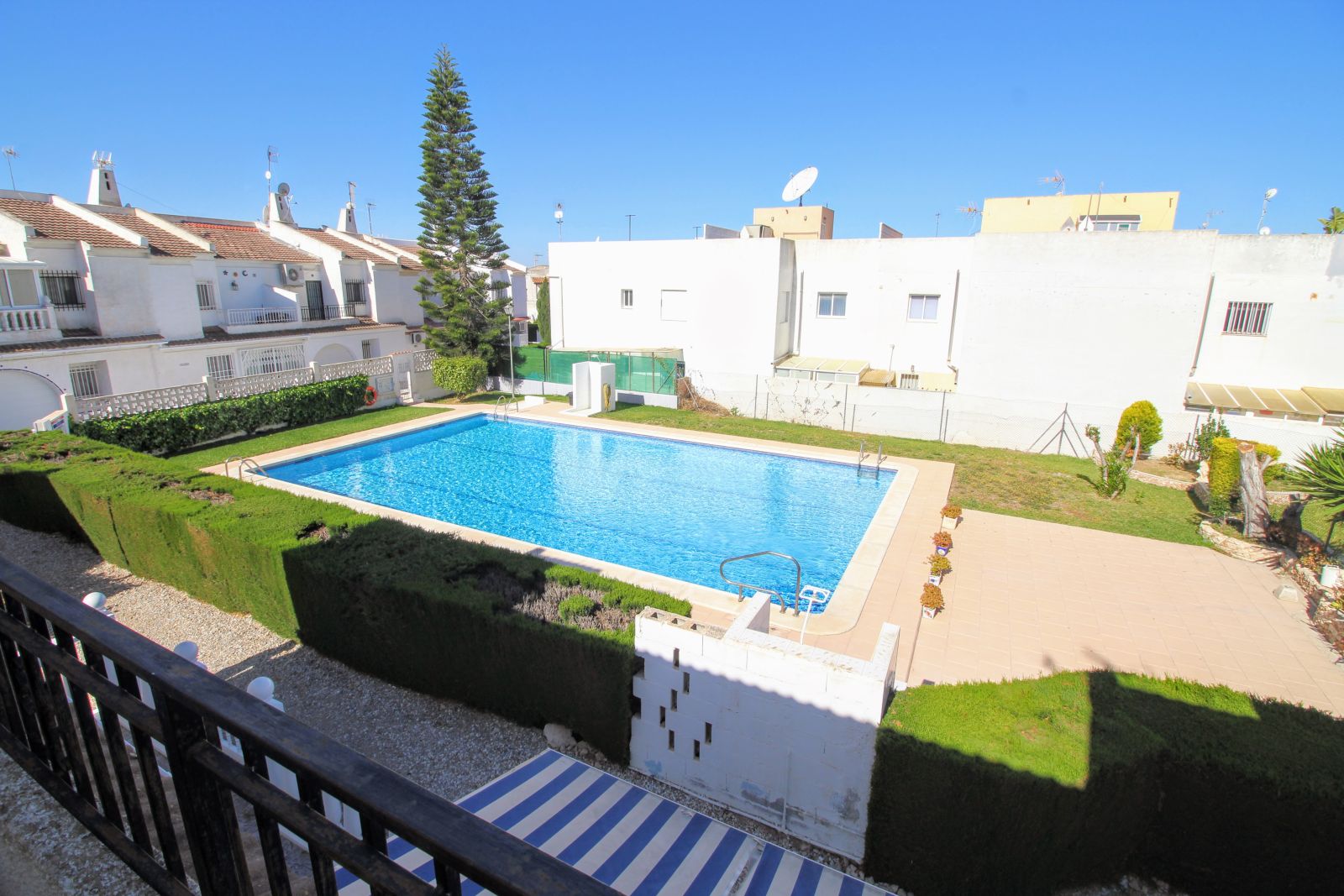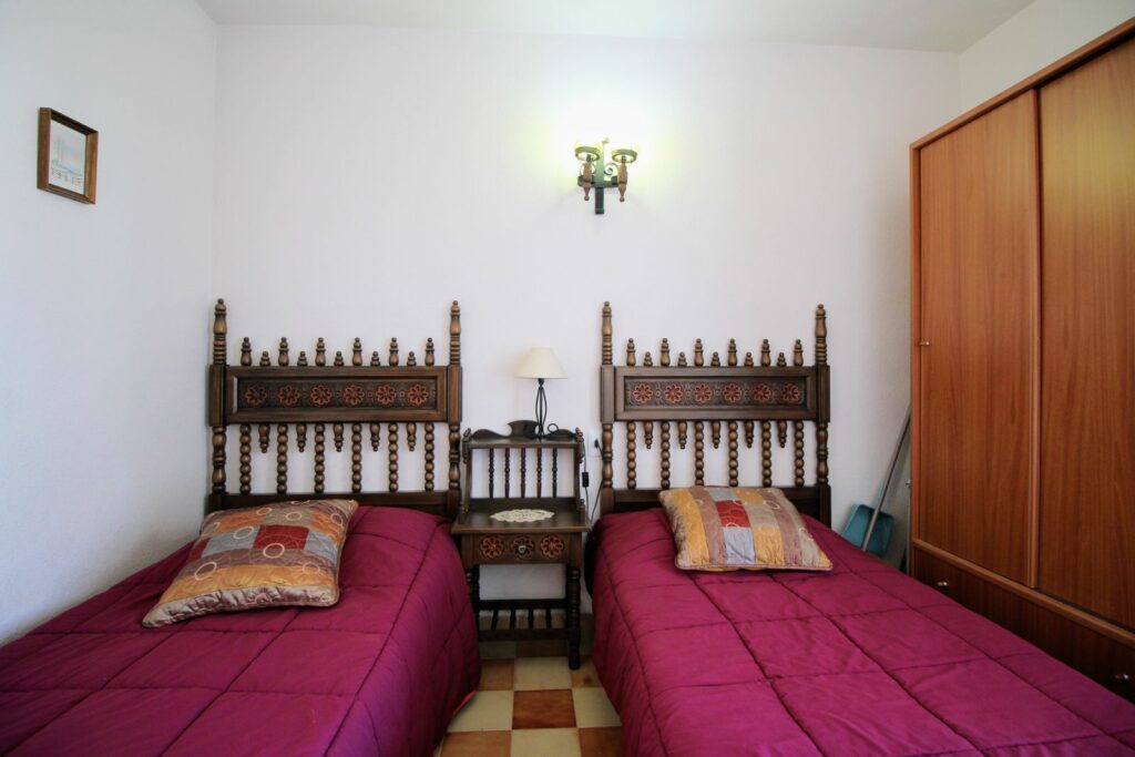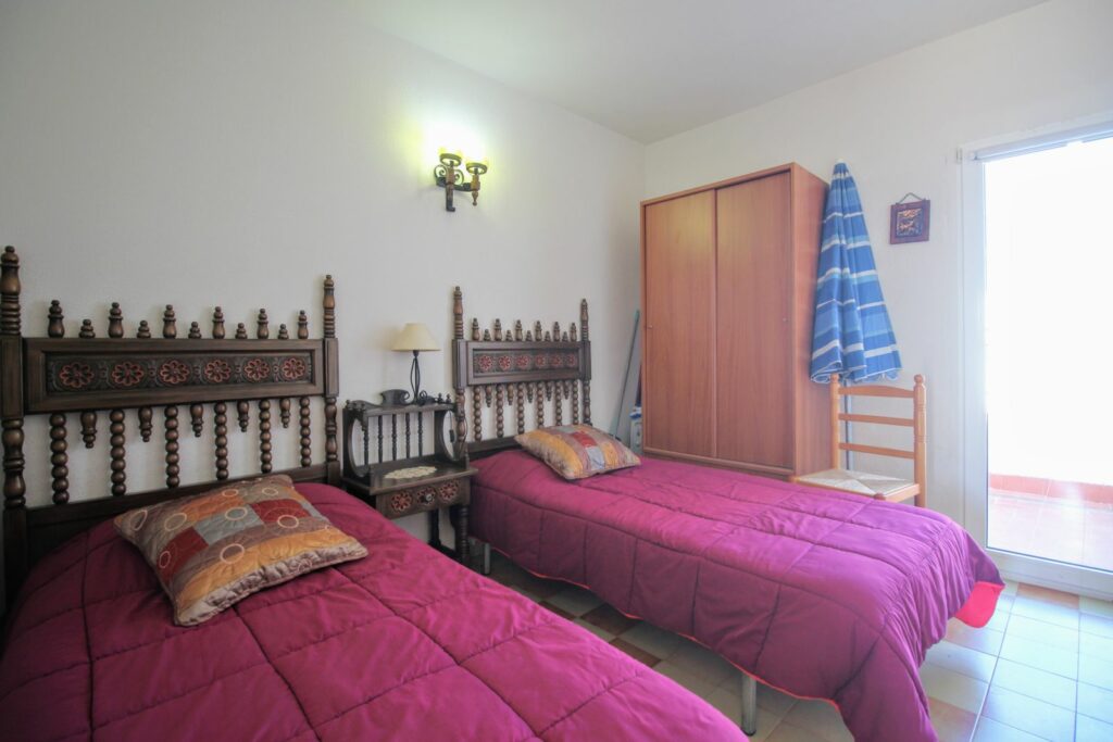 Soverommene er romslige og fra gjestesoverommet har du tilgang til bakre balkong med kveldssol og utsikt til felles bassengområde.