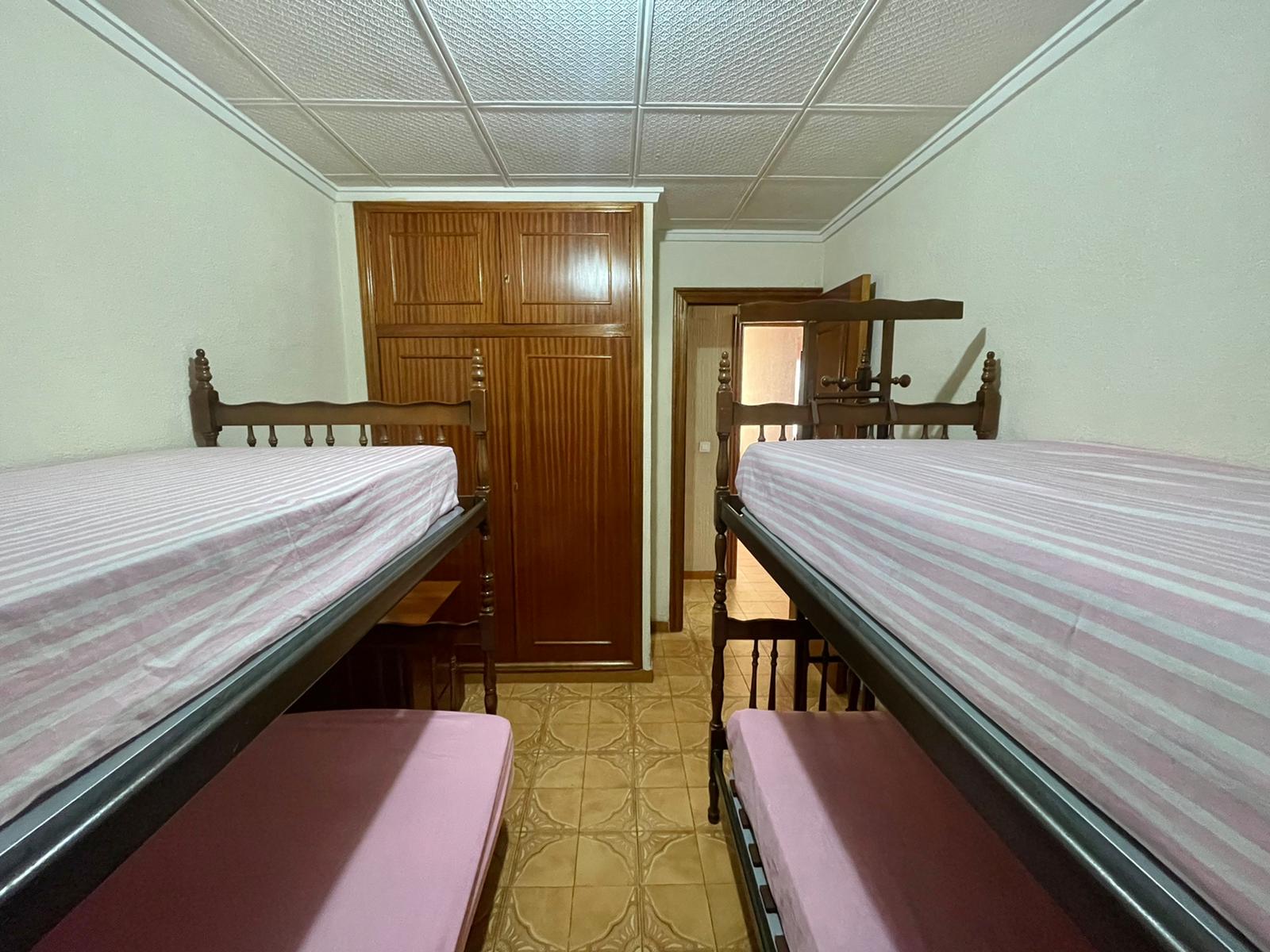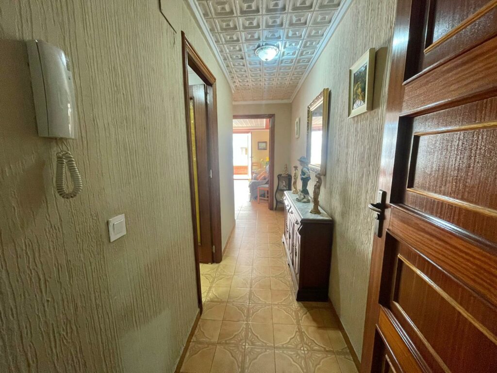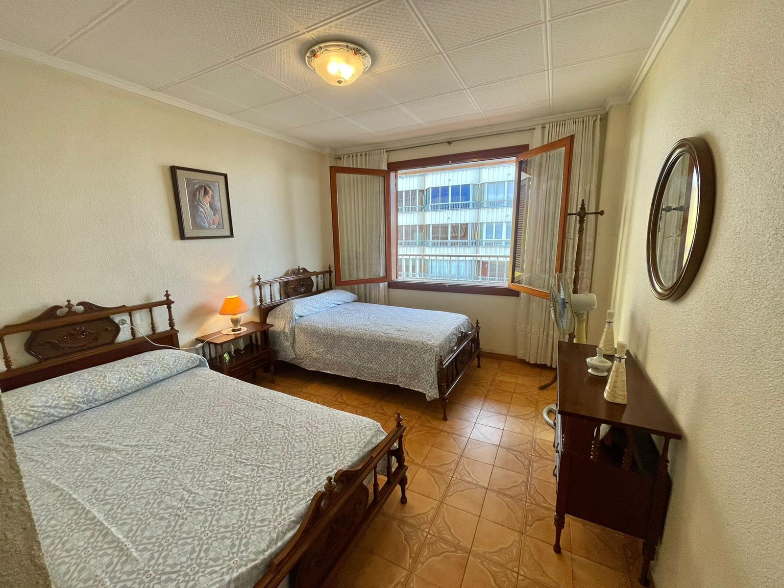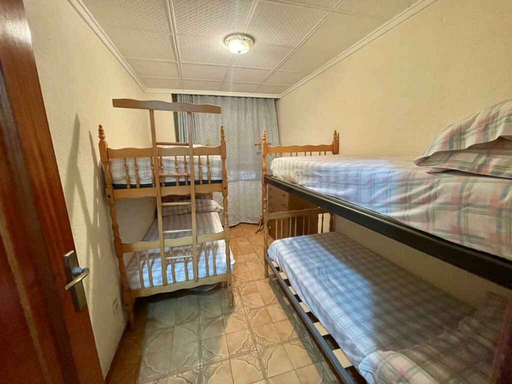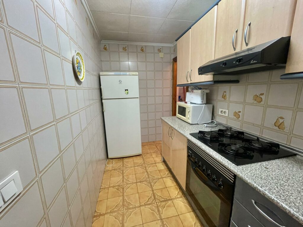 Leiligheten på 90 m2 ligger i blokkens i femte etasje. Bygningen heter Navamares III og ligger på første linje ved Playa del Acequion i Torrevieja.