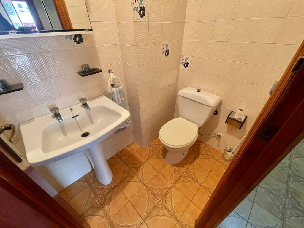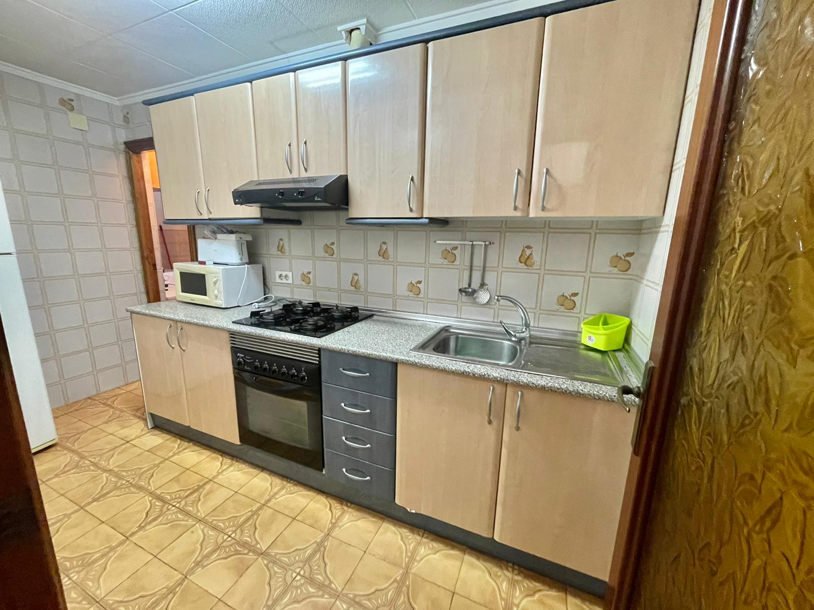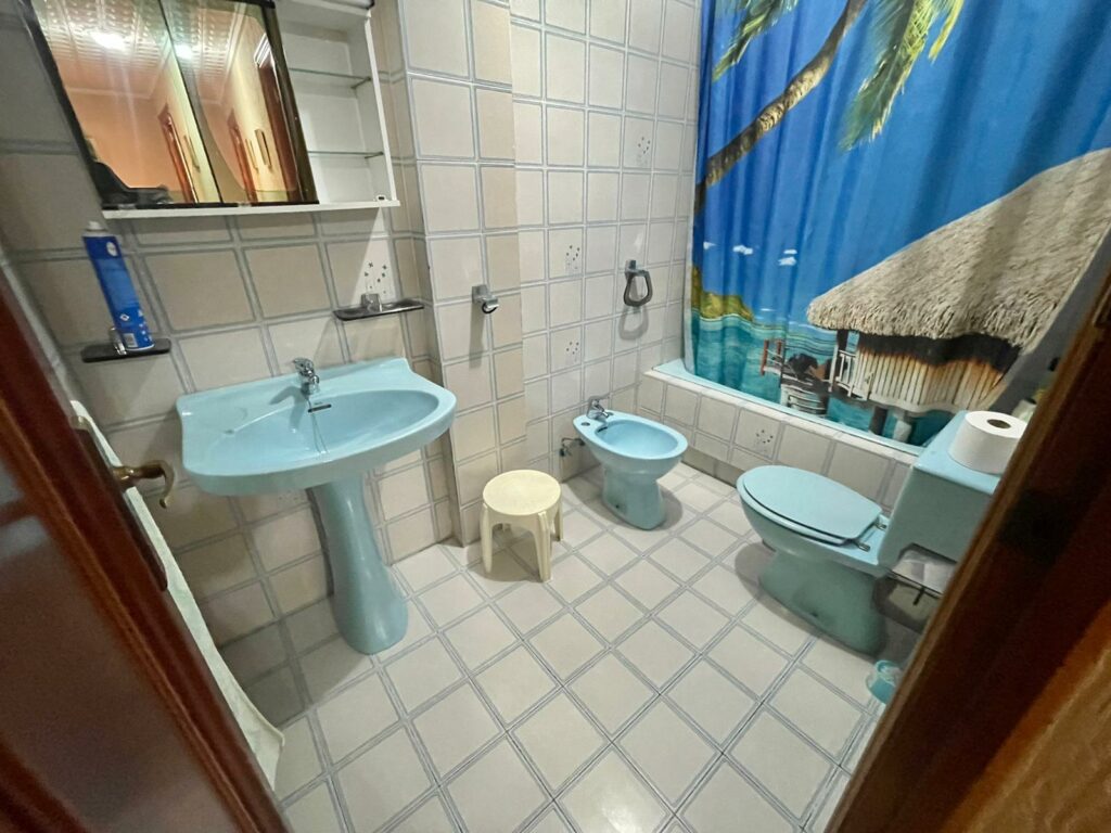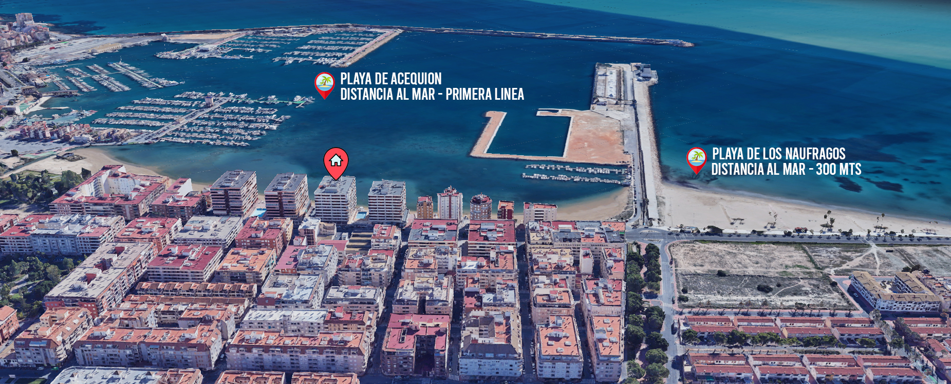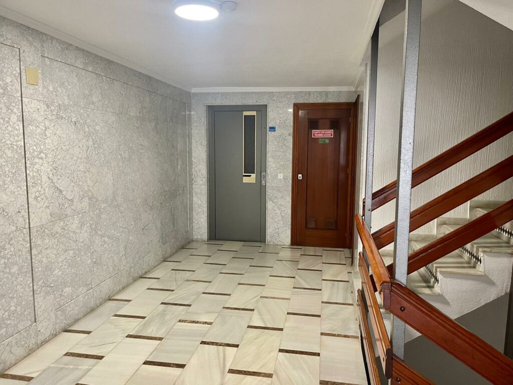 Leiligheten på 90 m2 ligger i blokkens i femte etasje. Bygningen heter Navamares III og ligger på første linje ved Playa del Acequion i Torrevieja.