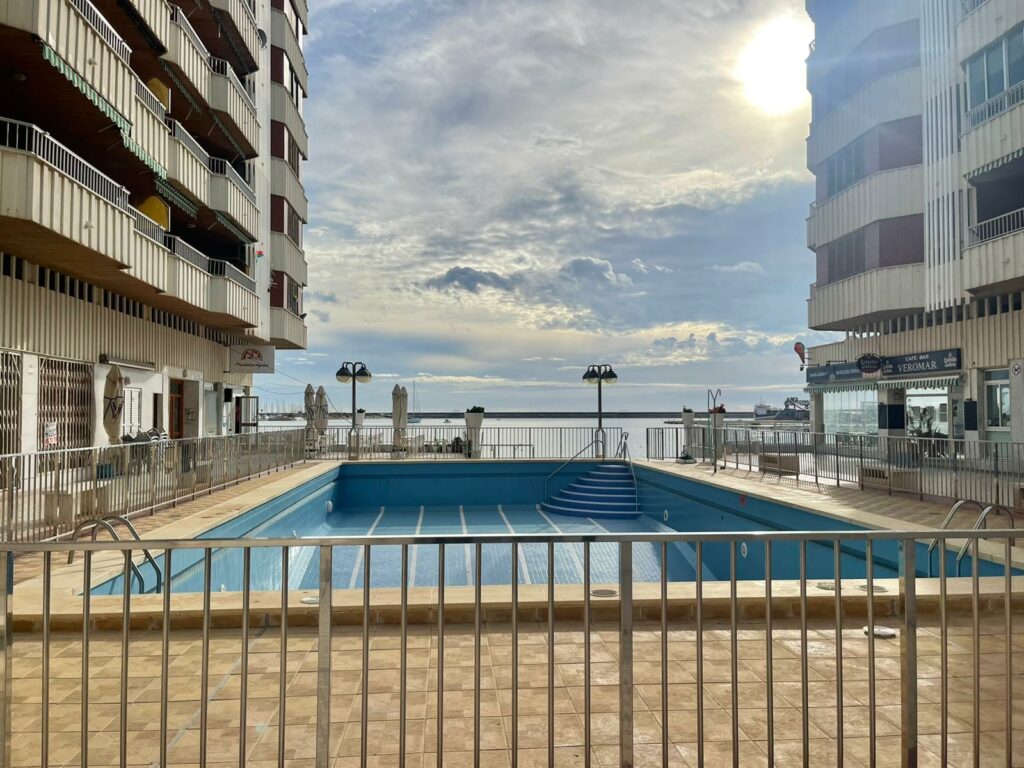 Edificios Navamares har et felles område med svømmebasseng rett foran havnen og med direkte tilgang til stranden.