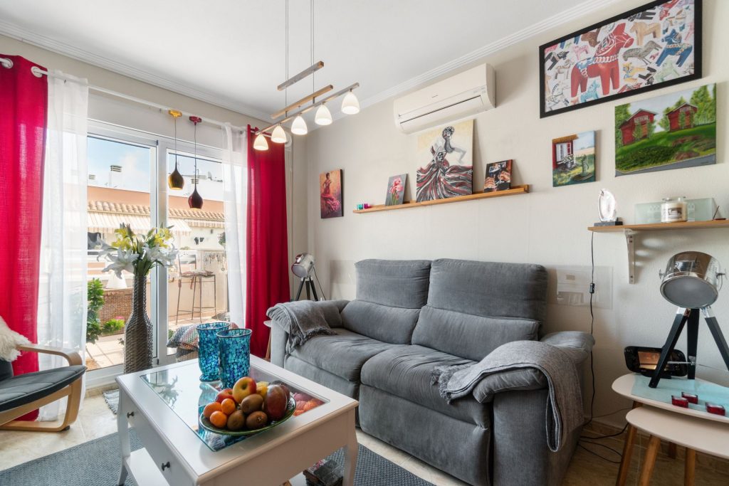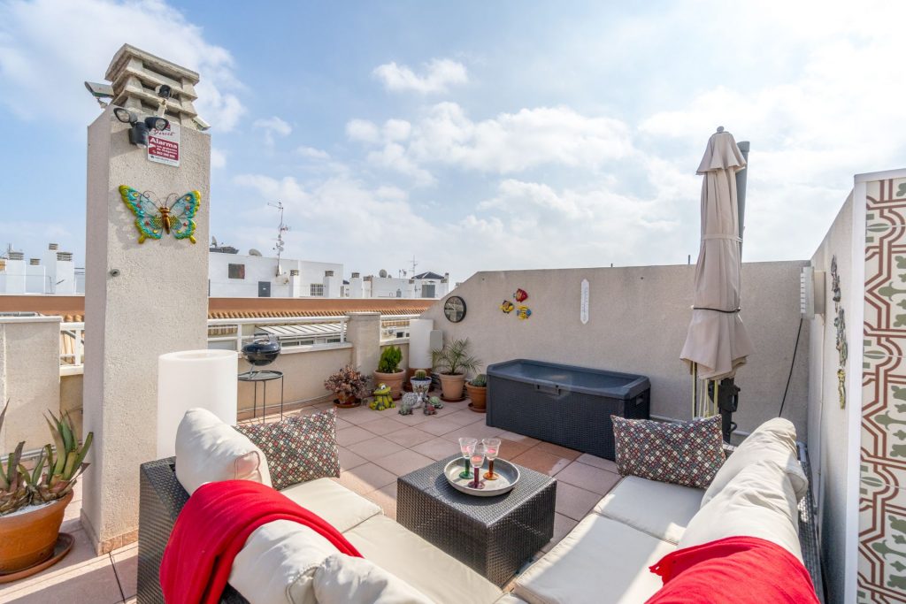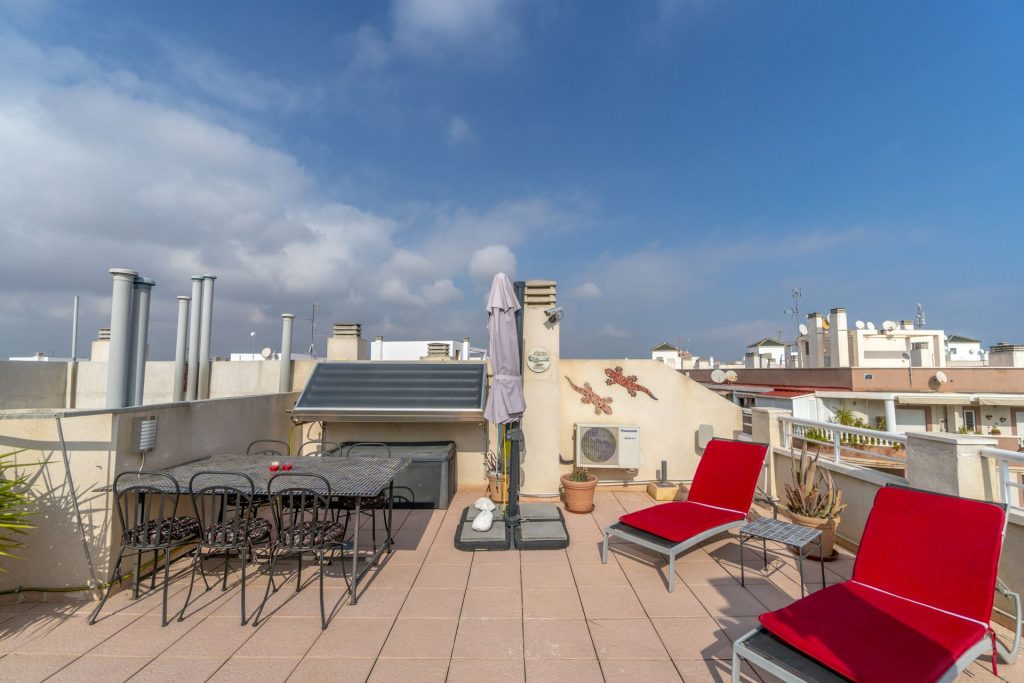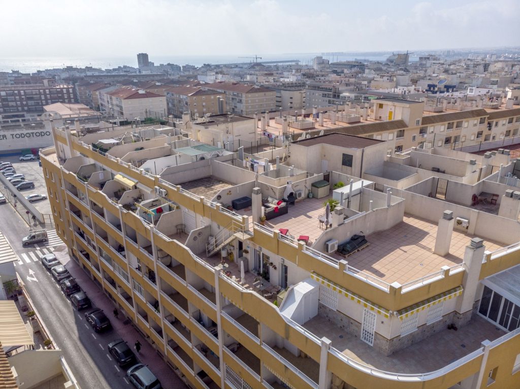 Meget sentral beliggenhet i Torrevieja kun 650 meter fra den flotte strandpromenaden og 700 meter fra Playa del Cura. Boligen ligger i byen, men likevel i et rolig strøk. Området er populært på grunn av nærheten til sentrum og til havet. Dette er et etablert område som lever hele året og det finnes alt du måtte trenge av fasiliteter i gangavstand fra boligen, som lokale hyggelige barer og restauranter, og ikke minst Middelhavet. Matbutikk ligger like ved.