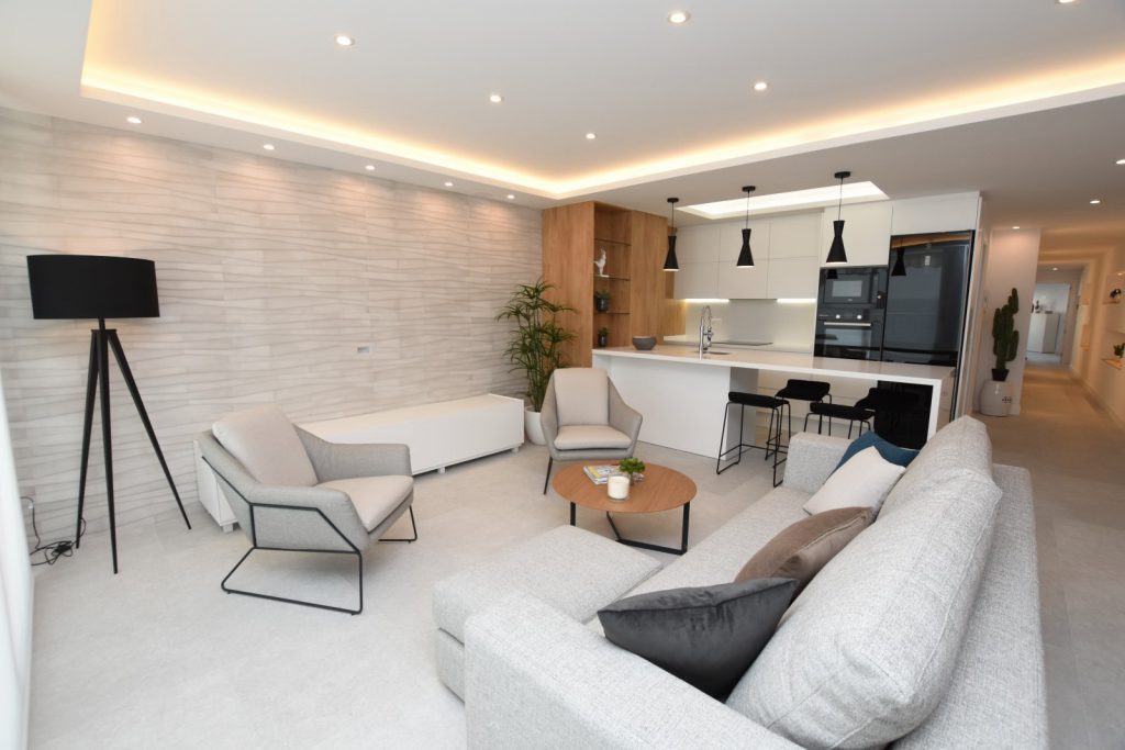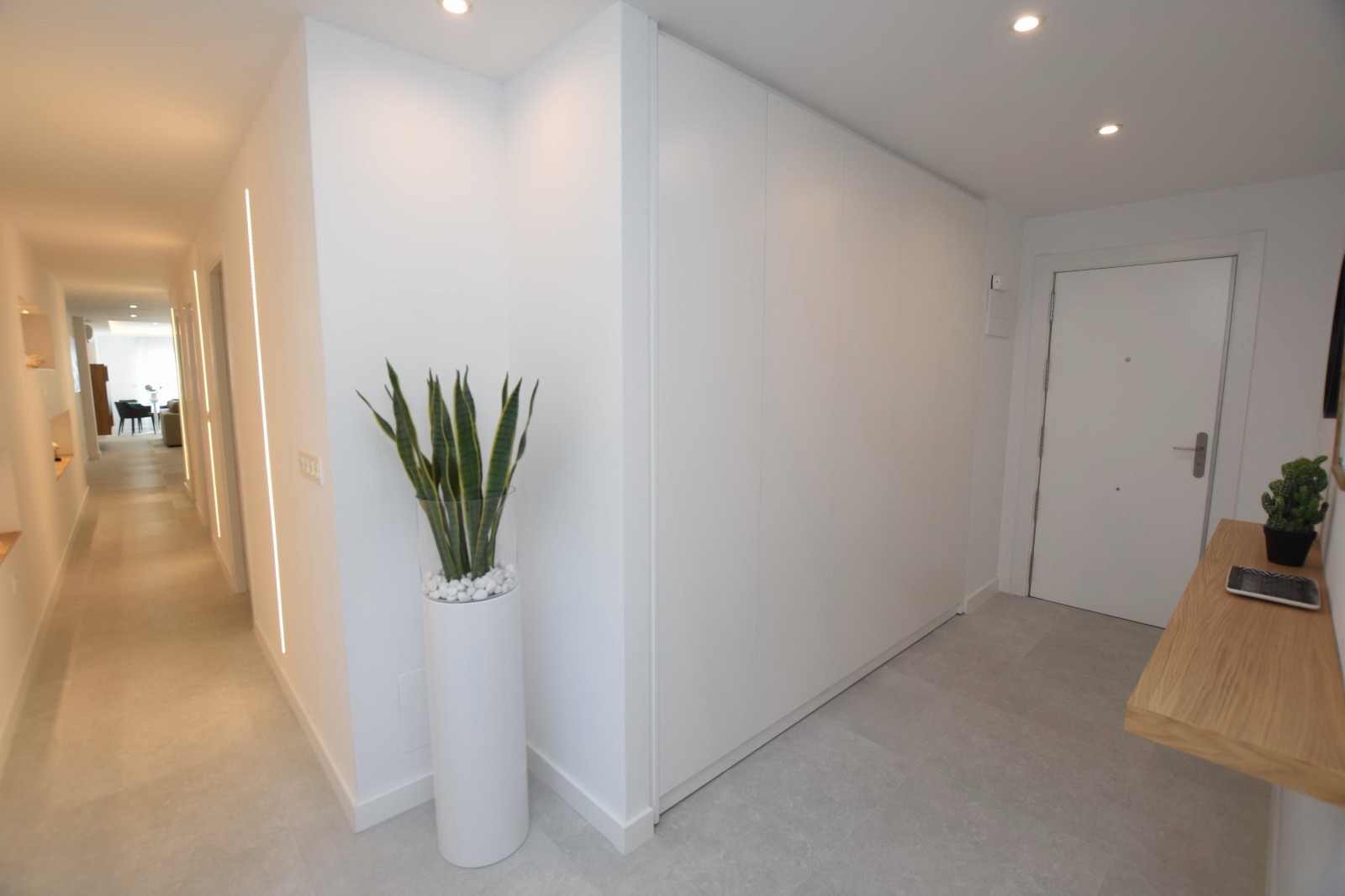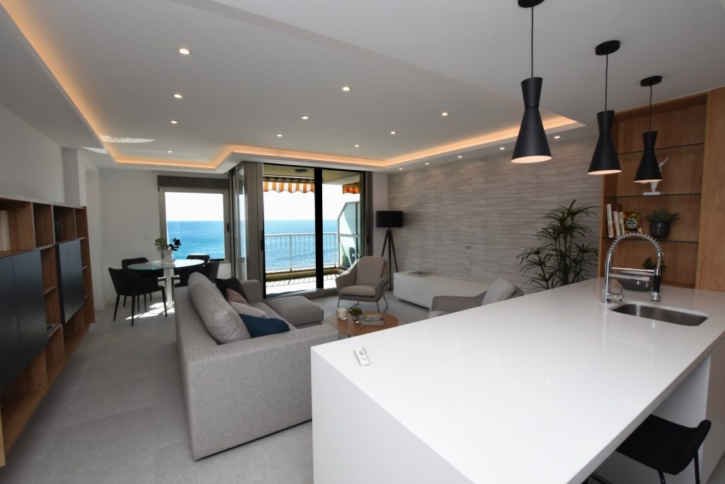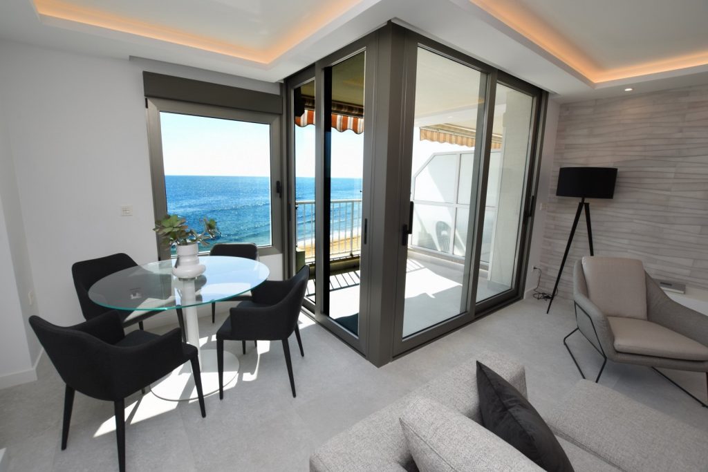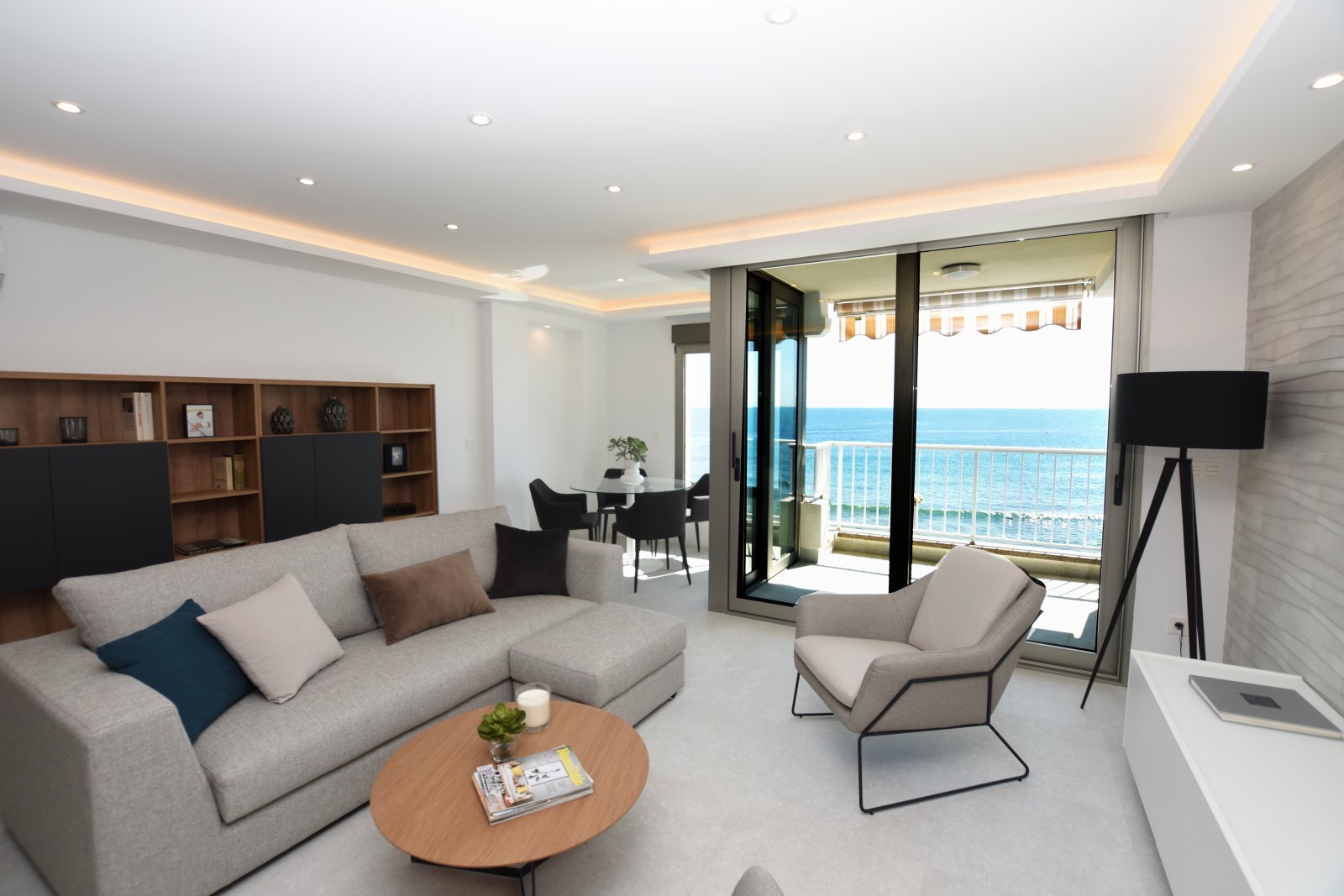 Flott leilighet på 120 m2 på første linje strand med vakker havutsikt. Nyrenovert med materialer av høy kvalitet. Leiligheten har et stort hovedsoverom på 25 kvadratmeter med walk in closet og en- suite. Deretter er det to doble soverom med garderober og et bad på 4 m². Det eksklusive kjøkkenet er fullt utstyrt og er åpent mot stuen på 40 m². Fra stuen er det utgang til terrassen med fantastisk utsikt.