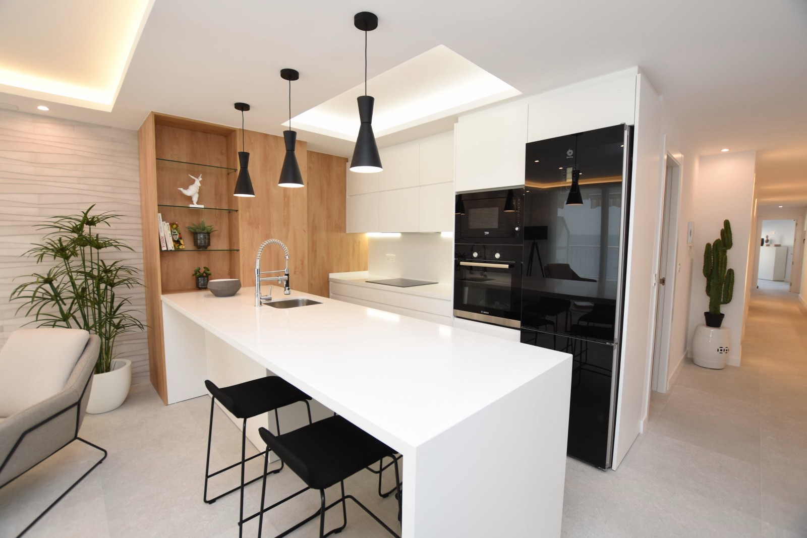 Leiligheten er fullt utstyrt med hvitevarer, air condition i hvert rom og elektriske persienner.