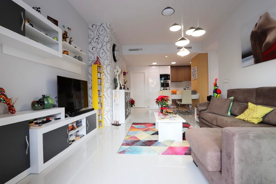 Det populære kjøpesenteret Habaneras og Carrefour er kun noen minutters gange unna og her finner du også kino og bowling. Det er også gangavstand til Torrevieja sentrum, Middelhavet og strandpromenaden. Playa del Acequion ligger kun 880 meter fra boligen.