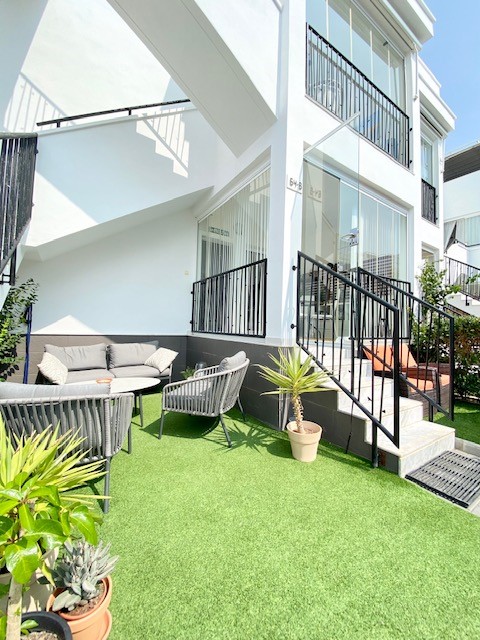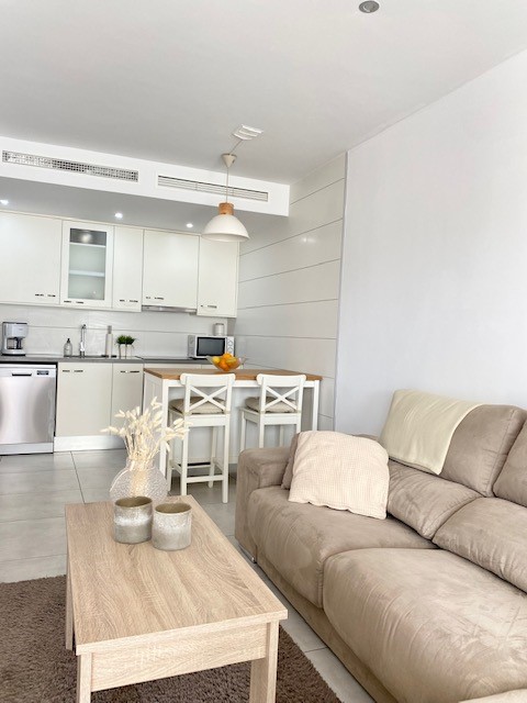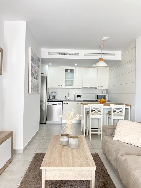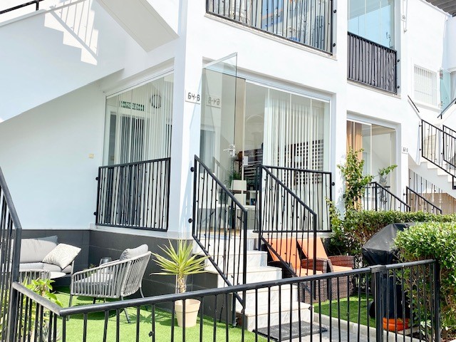 Velkommen til denne fantastiske boligen i første etasje i urbanisasjonen Vistabella i populære Aguas Nuevas, Torrevieja. Moderne med åpen planløsning og en deilig innglasset uteplass som kan nytes hele året. Boligen er nymalt og det meste av møblene er inkludert.