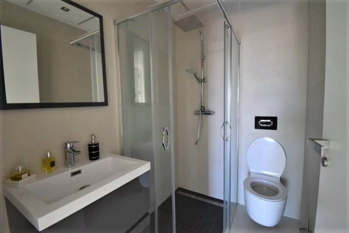 Denne smakfulle leiligheten ble bygget i 2018. Boligen har 3 soverom, alle med garderobeskap. Hovedsoverommet har en-suite. Begge badene har varmekabler. Kjøkkenet er moderne og har åpen løsning mot stuen hvor du har utgang til terrassen. Den hyggelige terrassen har god pall til sittegruppe.