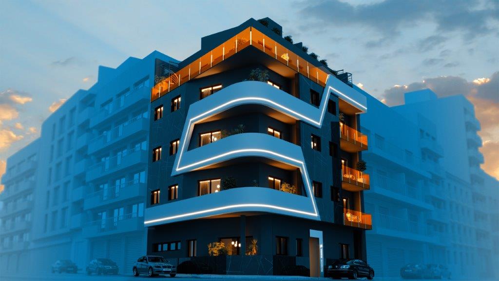 Alegria 20 er en ny og elegant bygning 250 meter fra den sentrale stranden i Del Cura i Torrevieja. Residencial Alegria XX består av 10 leiligheter med felles svømmebasseng, badstue og avslapningsområde. Alle leilighetene er store og romslige, fra 109 til 133 m2, med sideutsikt over havet og toppleiligheter med privat takterrasse.