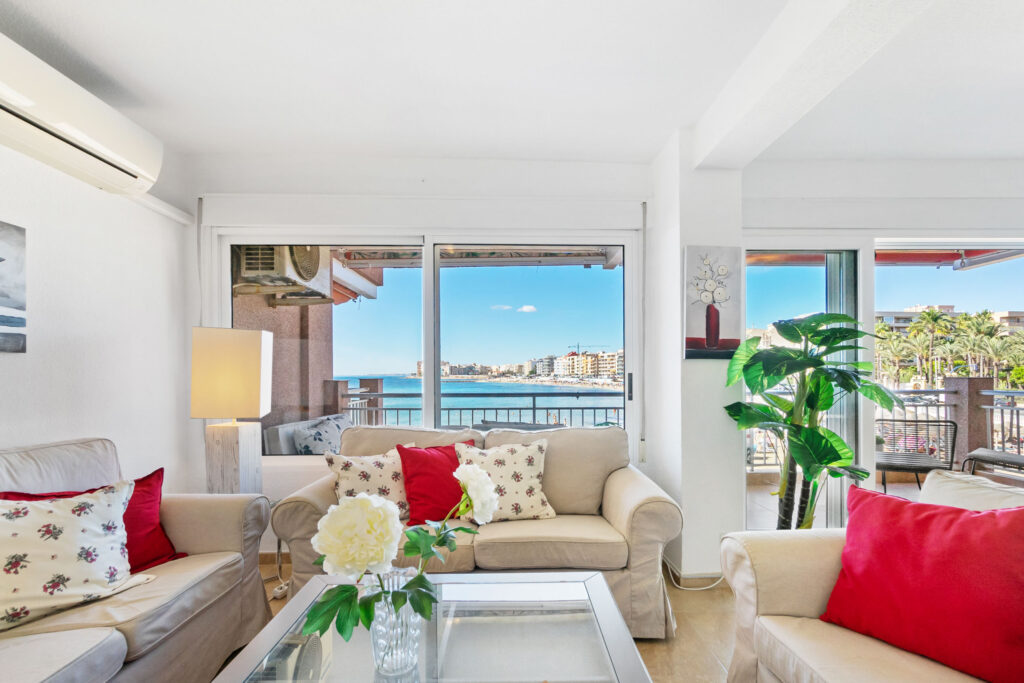 Drømmer du om å våkne opp til lyden av bølgene som slår mot stranden og nyte panoramautsikt over havet fra din egen balkong? Nå har du sjansen! Denne nyrenoverte leiligheten ligger på den ettertraktede Playa Los Locos i Torrevieja – en av de mest populære strendene på Costa Blanca.