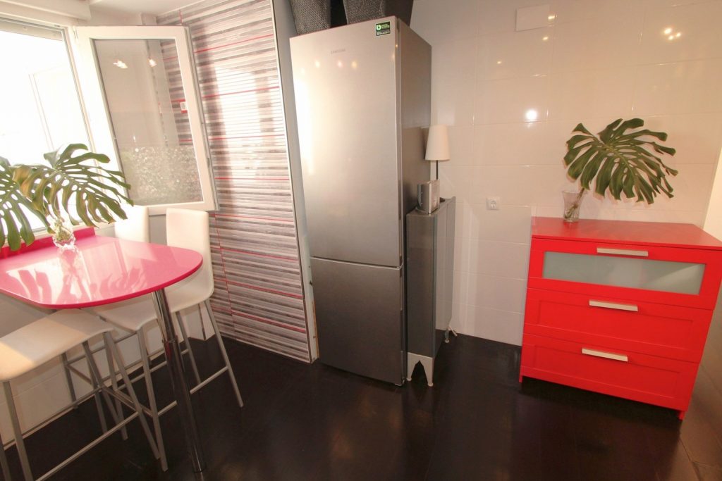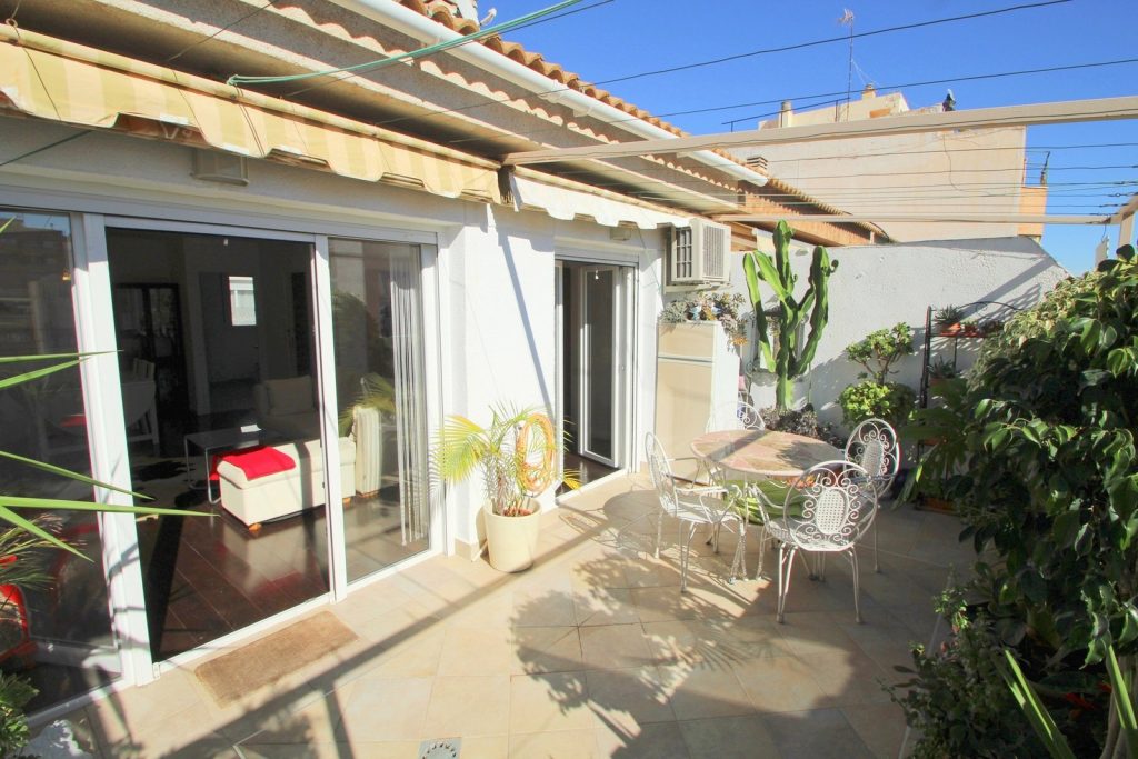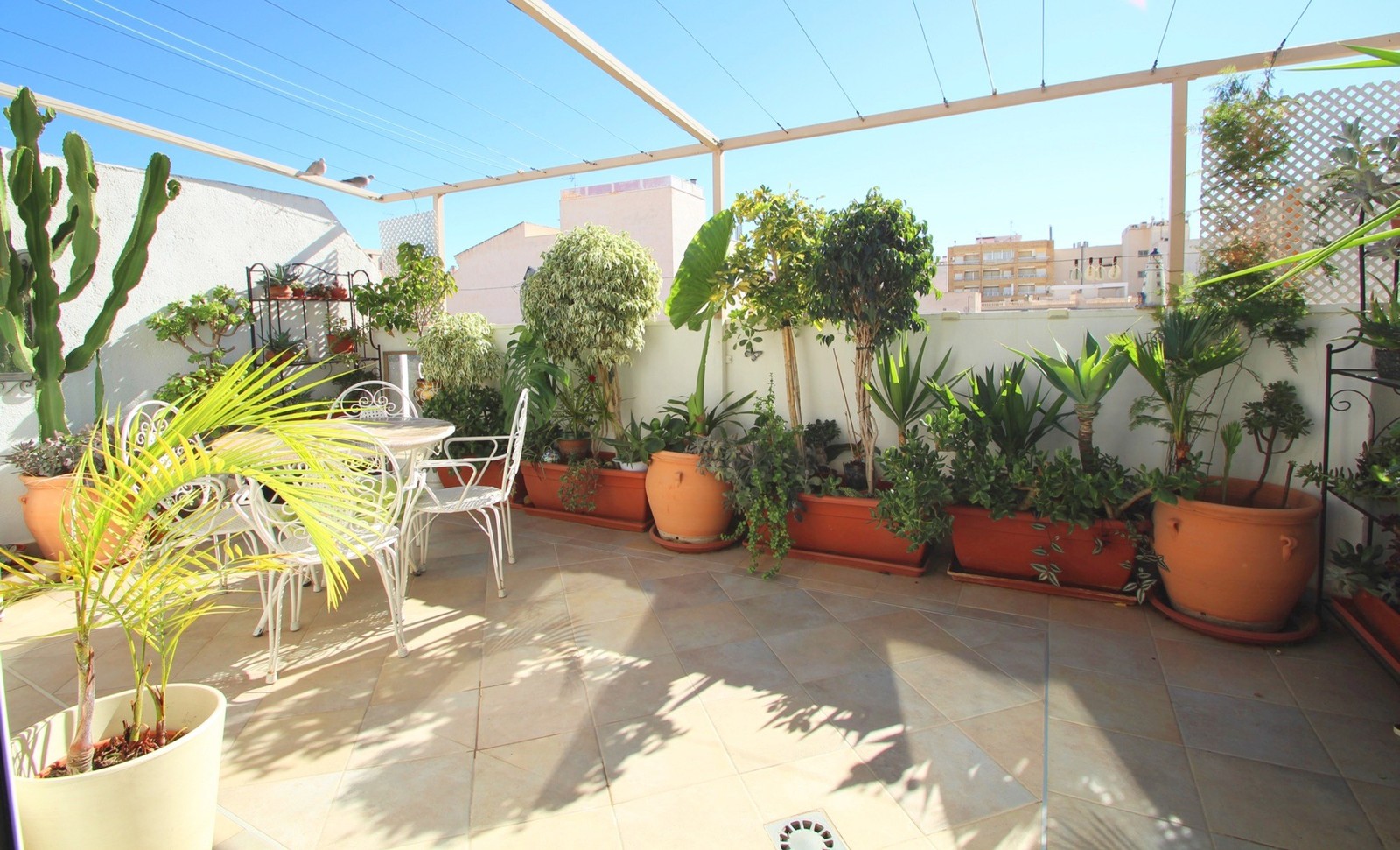 Nydelig penthouse i sørvendt posisjon i Torrevieja sentrum, nær alle fasiliteter og kun få meter fra den populære Playa del Cura-stranden. Leiligheten er nylig fullstendig renovert og klar til å flytte inn. Tidligere var det 4 soverom og to bad, men i dag er ett soverom fjernet for å få en romslig stue med mye naturlig lys. I dag er ett soverom brukt som vaskerom, men kan enkelt omdannes til soverom.