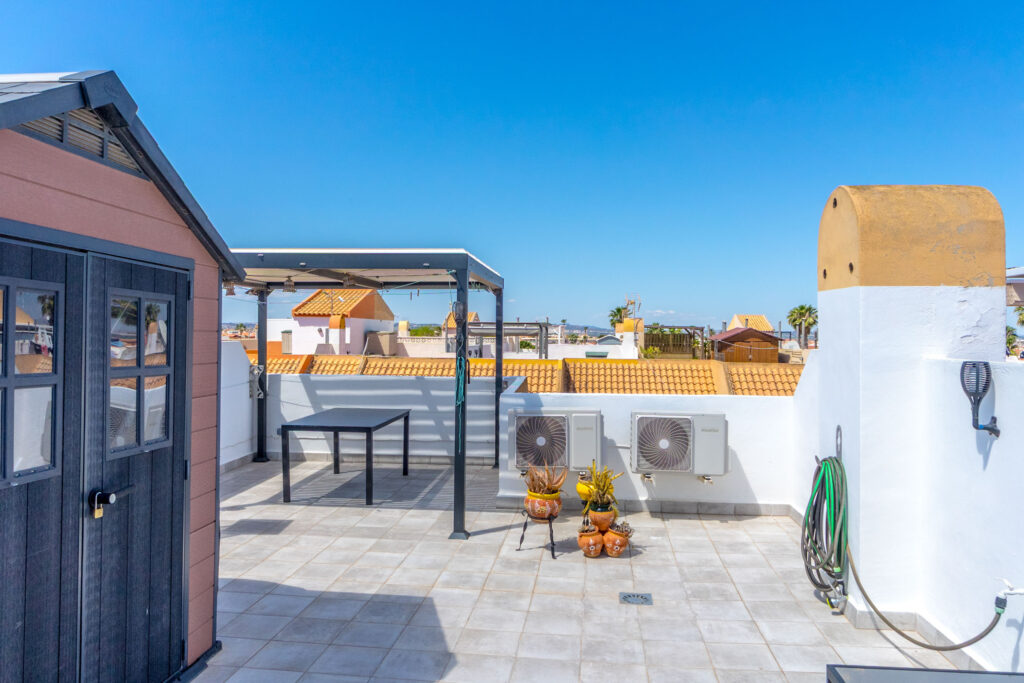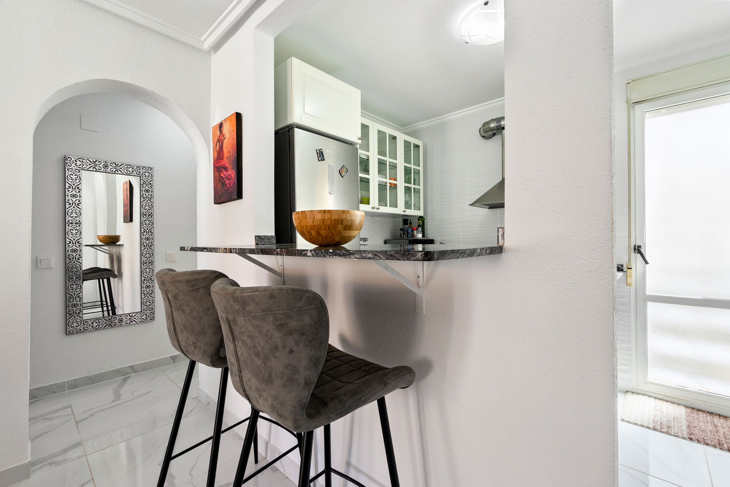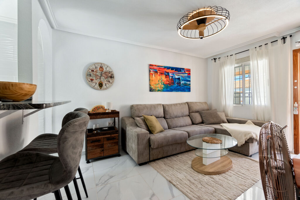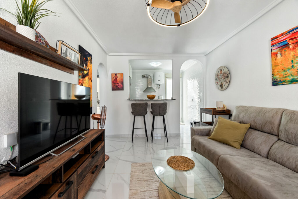 Det populære kjøpesenteret Habaneras og Carrefour er ca 1,5 km unna og her finner du også kino og bowling. Torrevieja sentrum, Middelhavet og stranden Playa del Acequion ligger 3 km unna boligen.