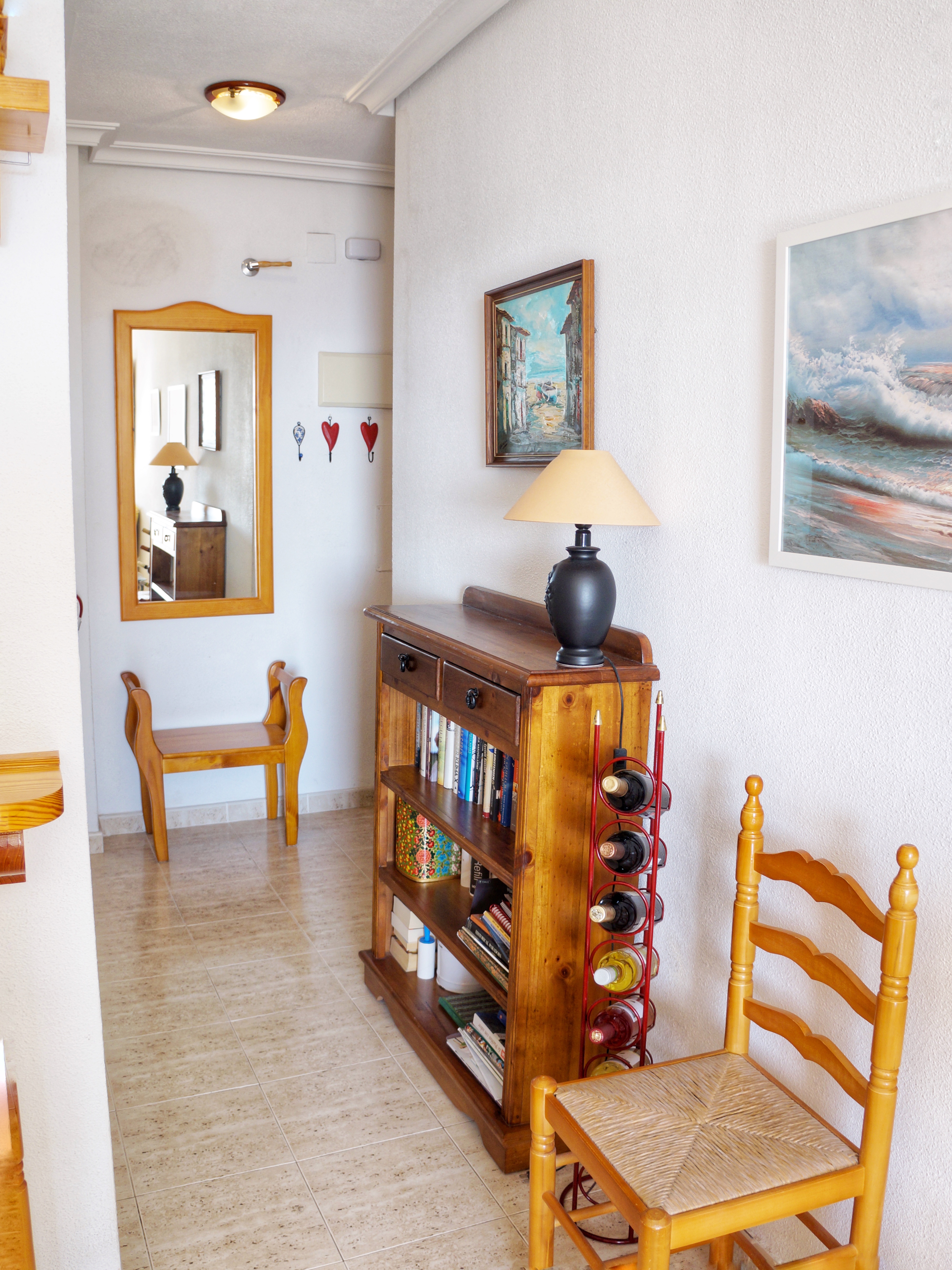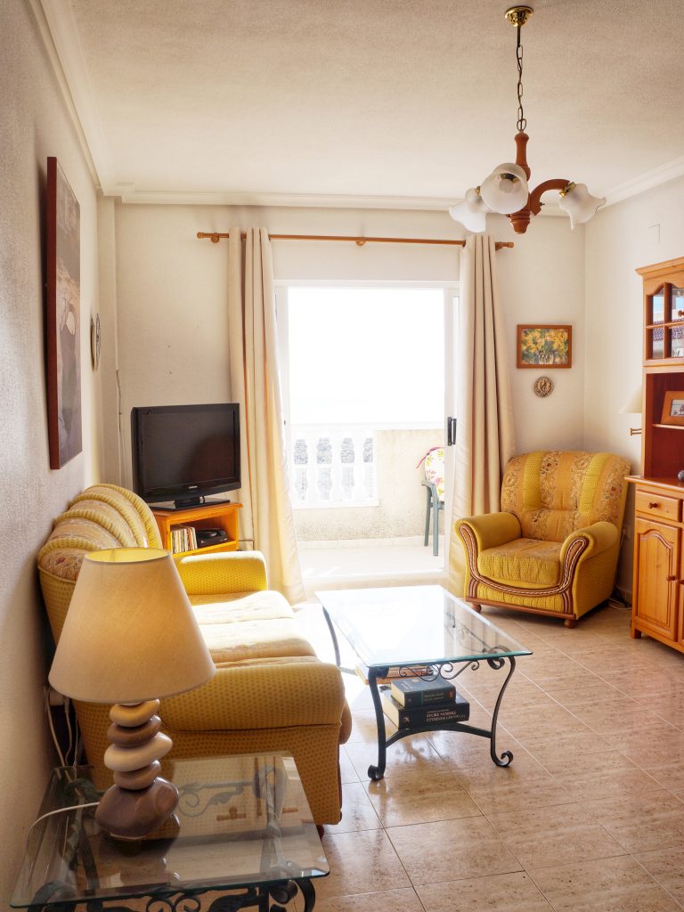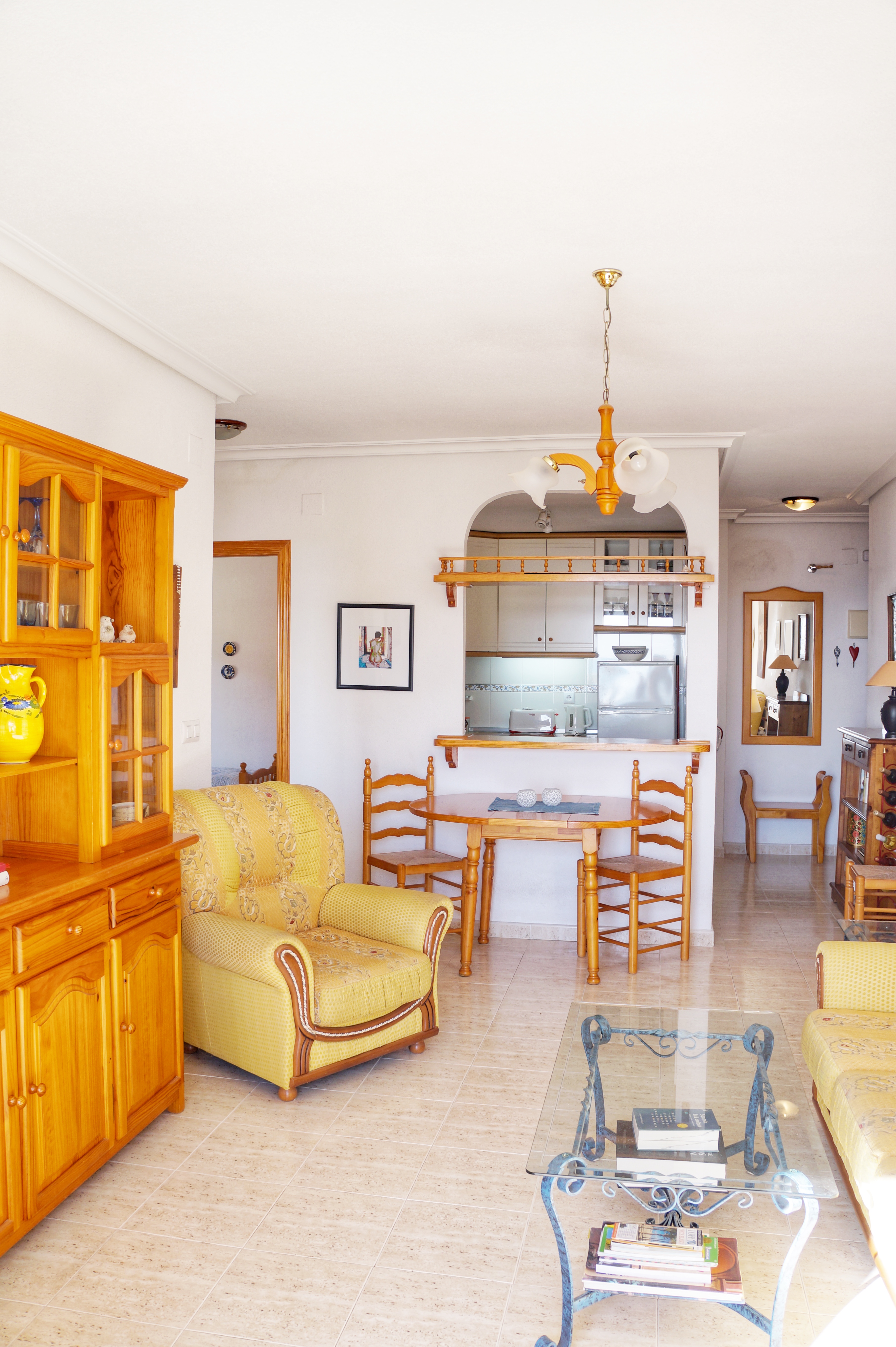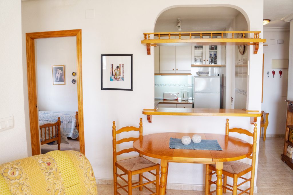 Leiligheten er på ca 50 m2 og har en klassisk spansk planløsning. Du kommer inn i en gang så vodere inn til kjøkkenet og den fine stuen, hvorfra du kan se rett ut over havet via terrassedørene mot den romslige terrassen hvor det er plass til flere sittegrupper. Herfra har du nydelig utsikt over fellesområdet med basseng og Middelhavet.