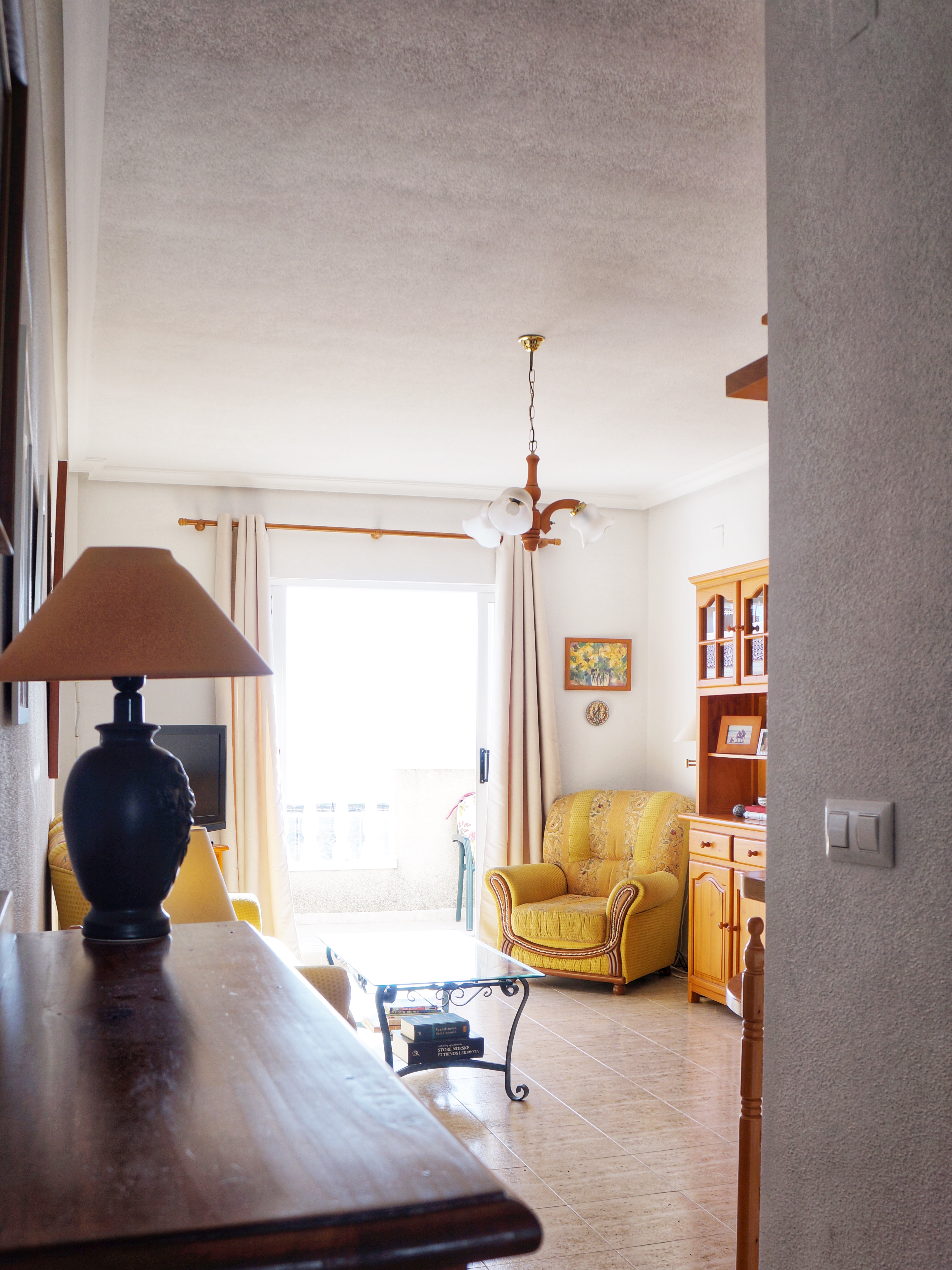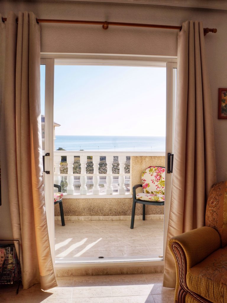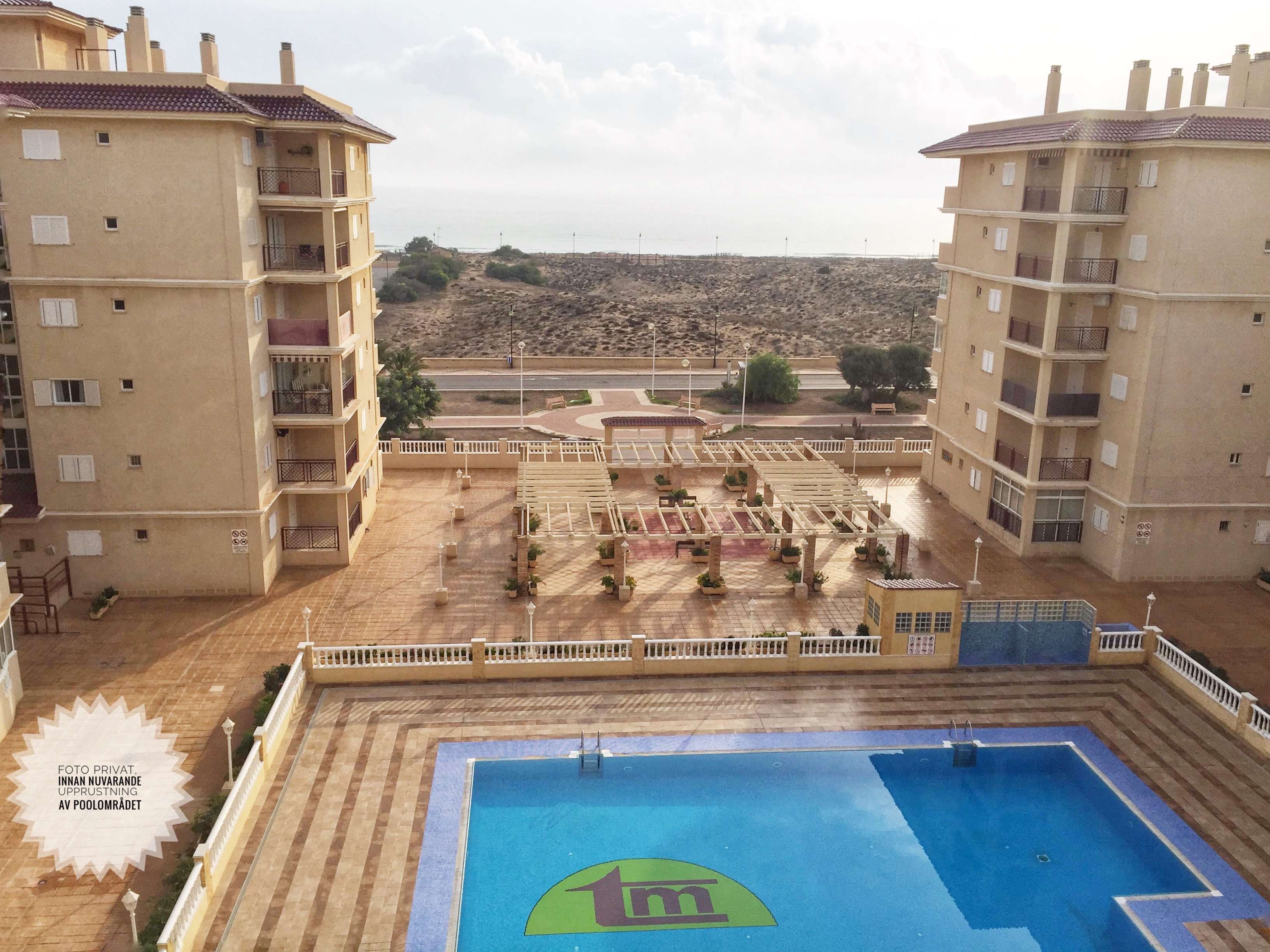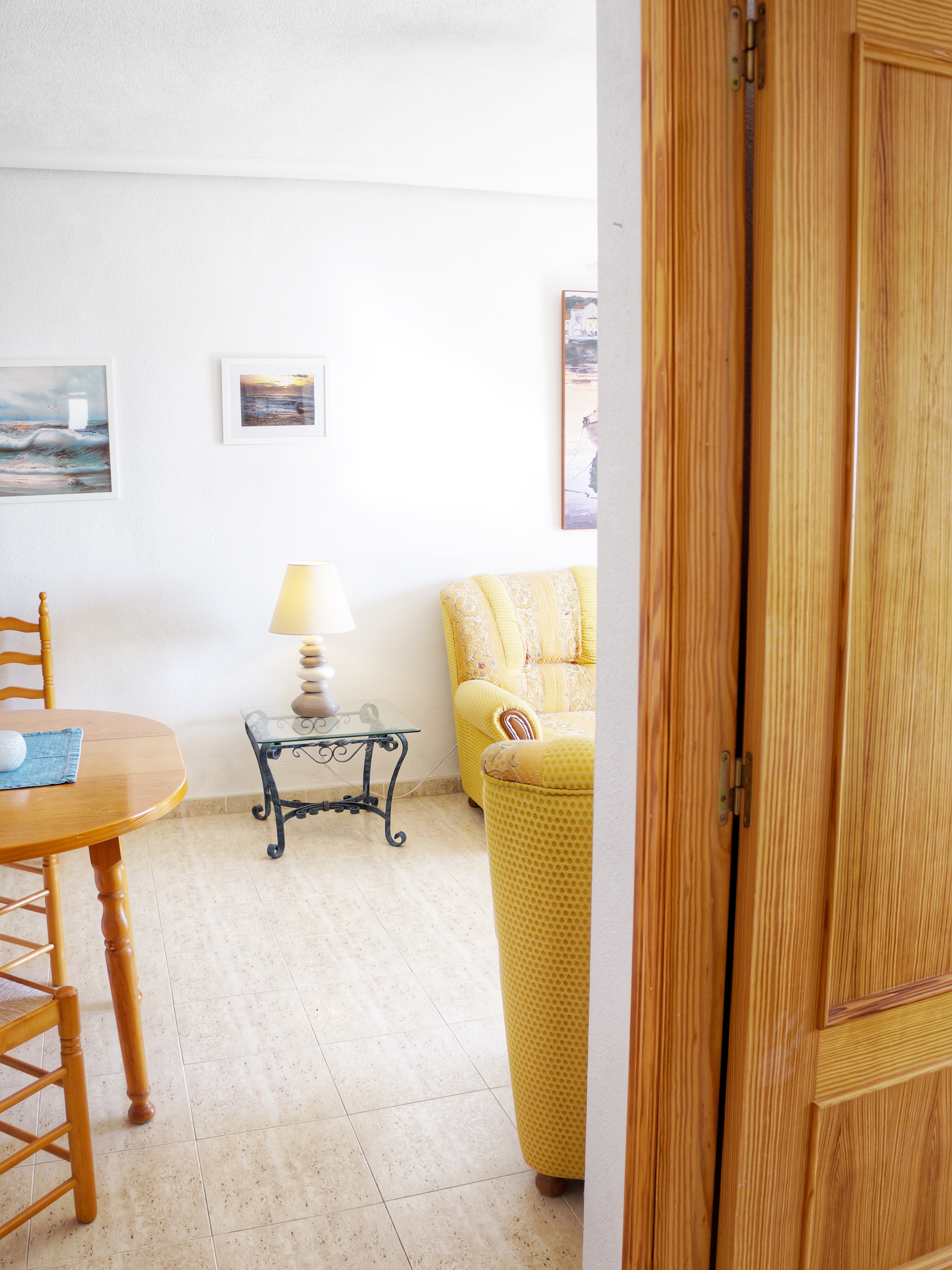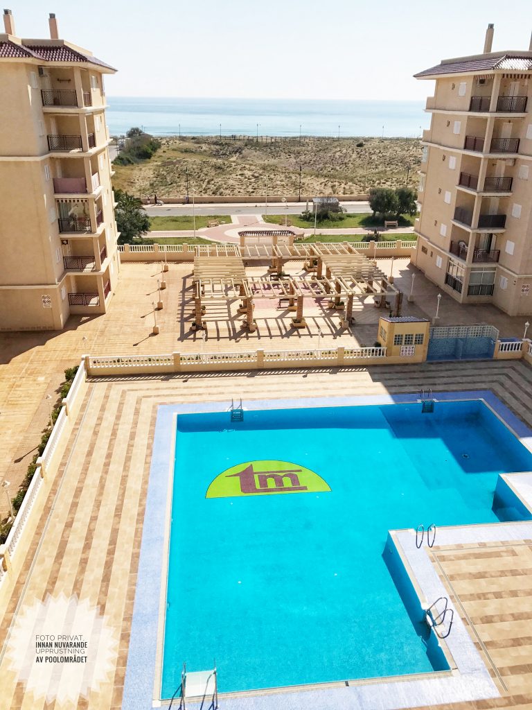 Leiligheten er på ca 50 m2 og har en klassisk spansk planløsning. Du kommer inn i en gang så vodere inn til kjøkkenet og den fine stuen, hvorfra du kan se rett ut over havet via terrassedørene mot den romslige terrassen hvor det er plass til flere sittegrupper. Herfra har du nydelig utsikt over fellesområdet med basseng og Middelhavet.