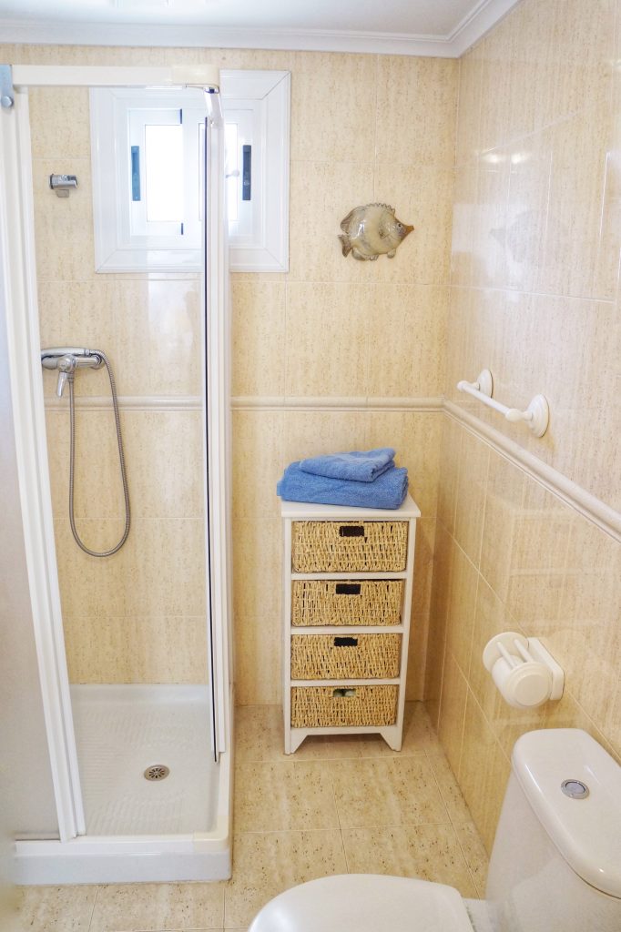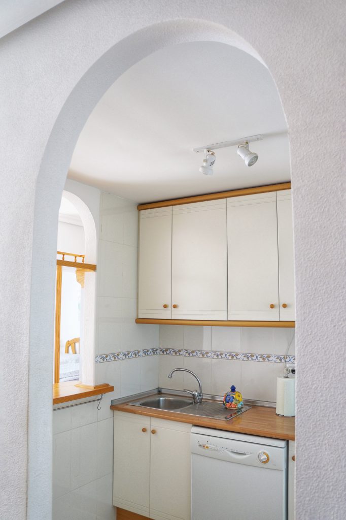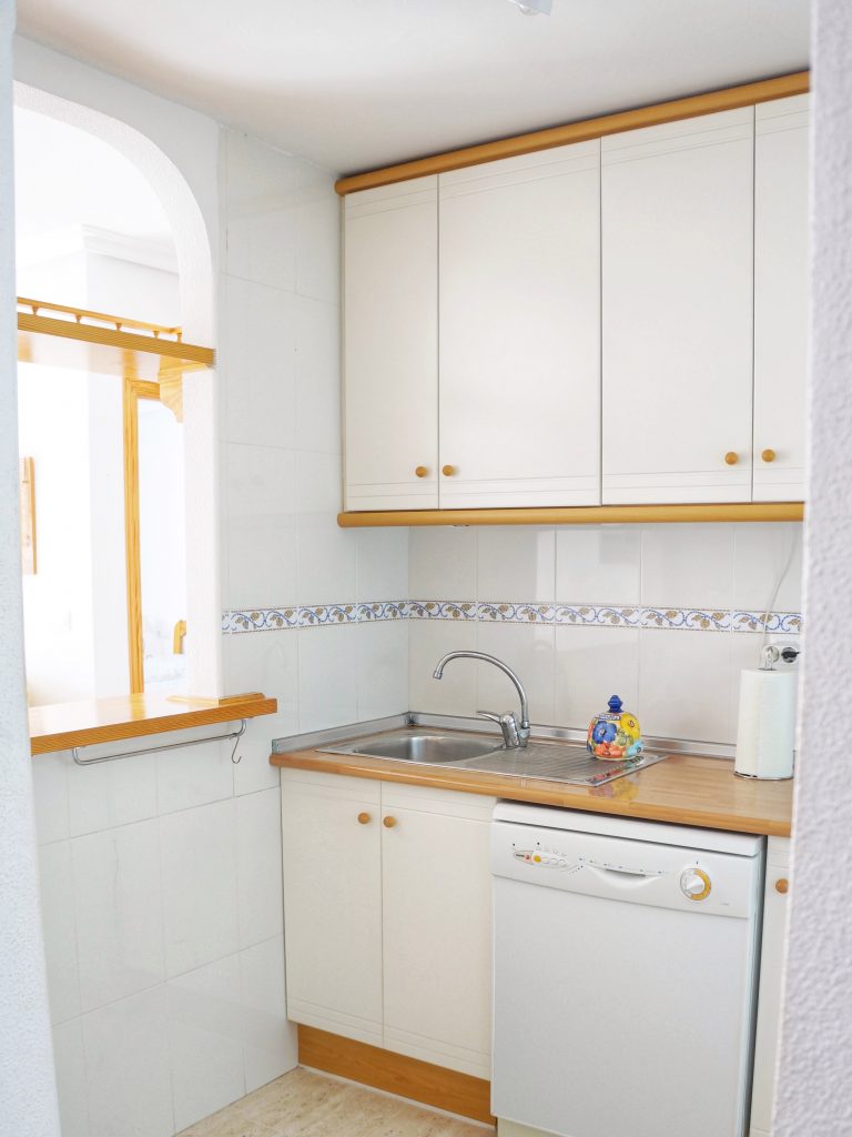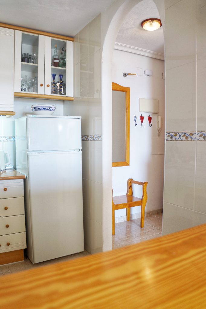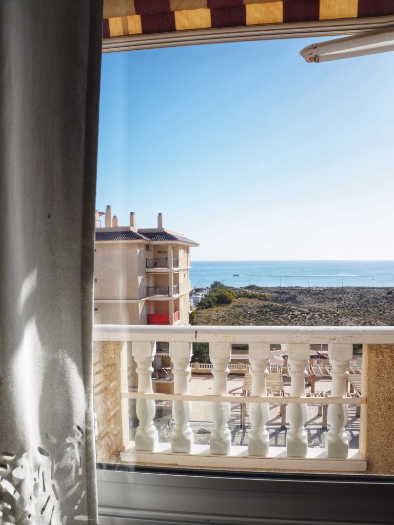 Leiligheten er på ca 50 m2 og har en klassisk spansk planløsning. Du kommer inn i en gang så vodere inn til kjøkkenet og den fine stuen, hvorfra du kan se rett ut over havet via terrassedørene mot den romslige terrassen hvor det er plass til flere sittegrupper. Herfra har du nydelig utsikt over fellesområdet med basseng og Middelhavet.