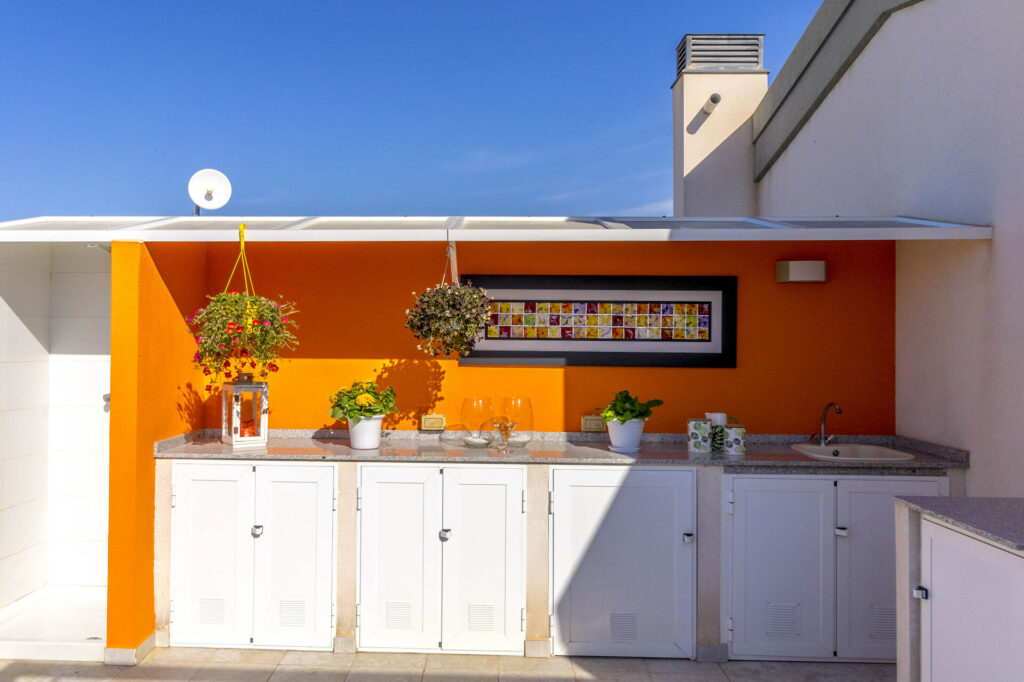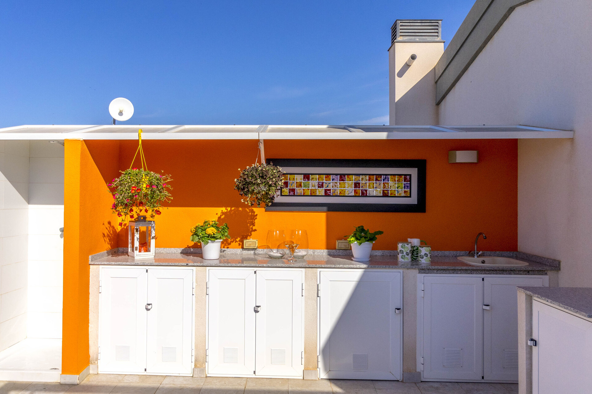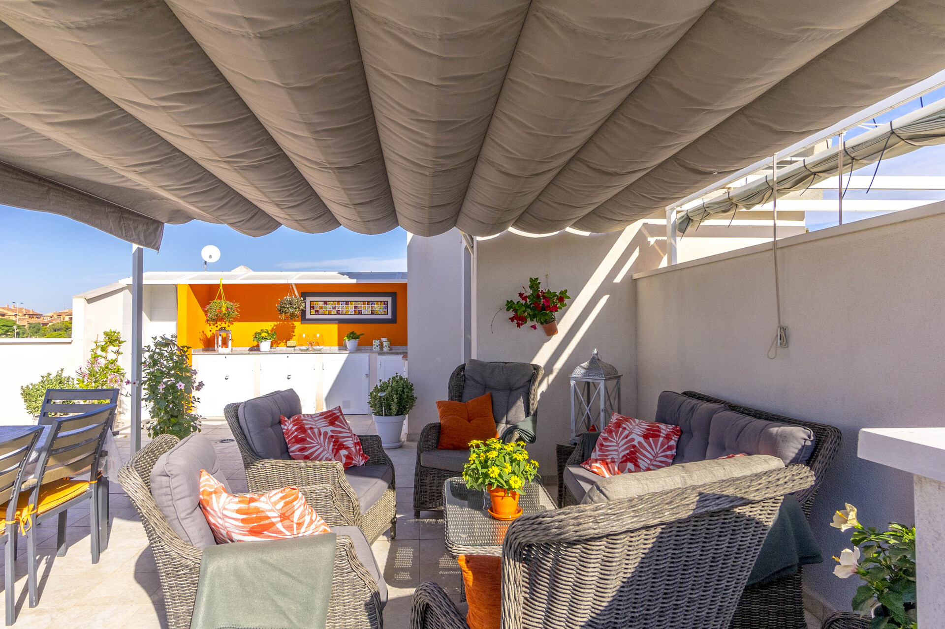 I tillegg er det en flott og meget solrik takterrasse på ca 60 m2, her kan du nyte den fantastiske utsikten ut over Middelhavet og områdene rundt. På takterrassen er det installert utekjøkken, her er det kokemuligheter, kjøleskap og grill, eier har også installert varmtvann som er veldig praktisk da man slipper å gå ned med oppvask etter et deilig måltid.