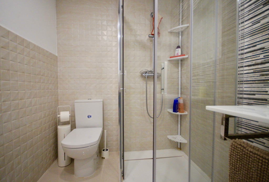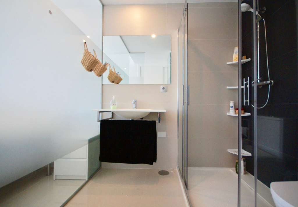 Leiligheten har 2 soverom med garderobeskap og 2 komplette bad, et av rommene er ”en-suite”.