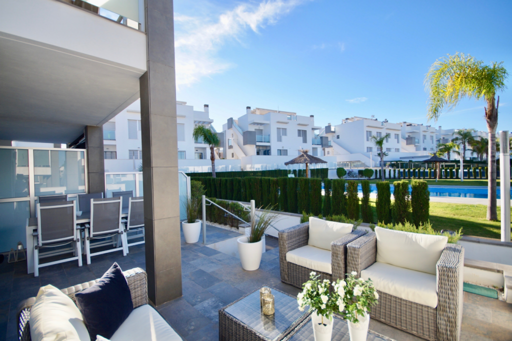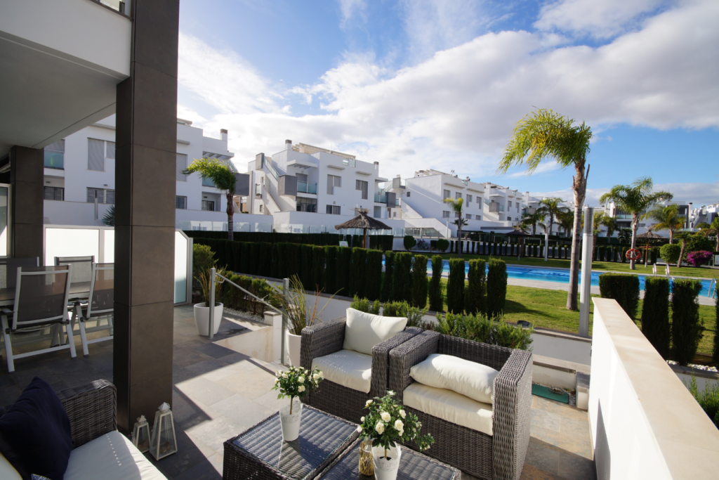 Residencial Amay Quinto er kjent for sitt flotte hageanlegg med beplantning og ekte gress. 2 bassenger, hvorav ett av dem er oppvarmet. Urbanisasjonen er populær for sin gode beliggenhet med kun 15 minutters gange til stranden og i umiddelbar nærhet finner du supermarked, restauranter og andre tjenester.