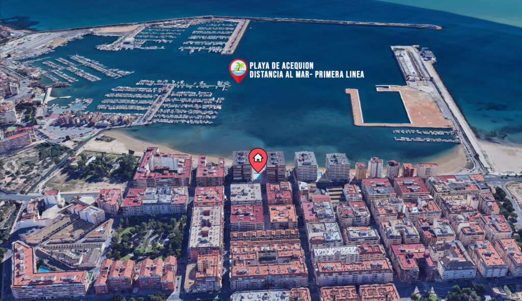 Denne leiligheten har en meget sentral beliggenhet i Torrevieja, rett ved den hyggelige stranden Acequion og båthavnen Marina International. Her kan du finne ro og glede i urbane omgivelser, med kort avstand til det meste.