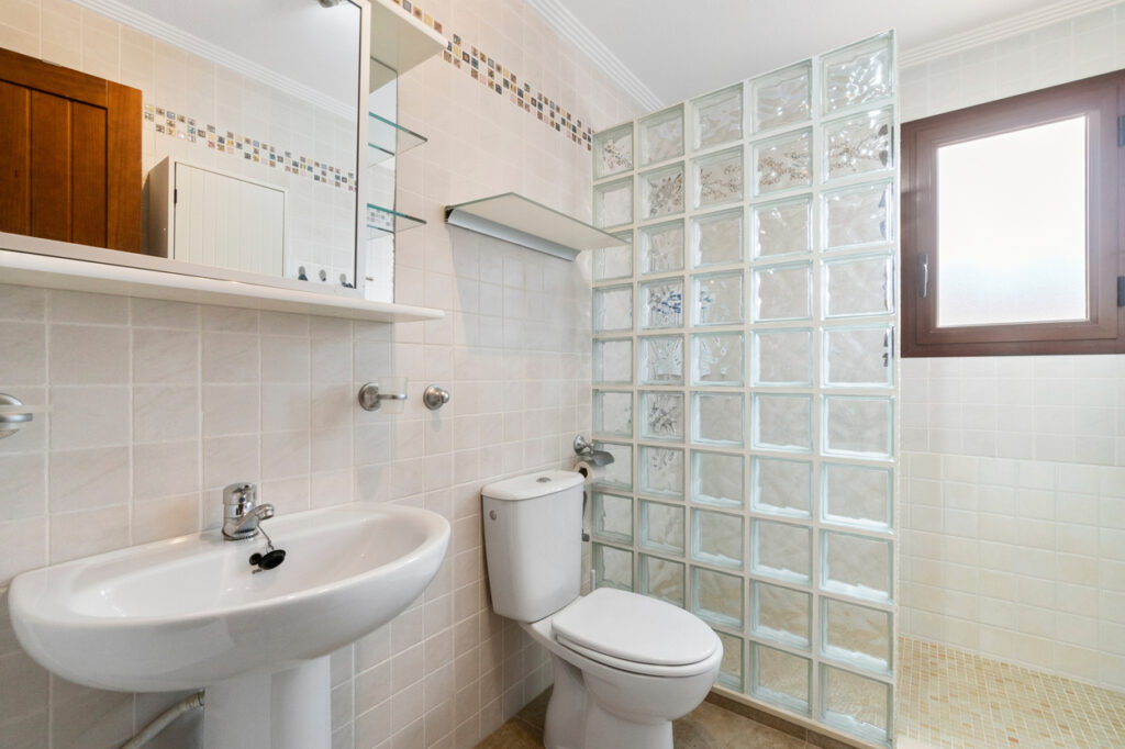 Fra terrassen har du utsikt over det felles bassengområdet og fra et soverom har du utsikt til middelhavet.