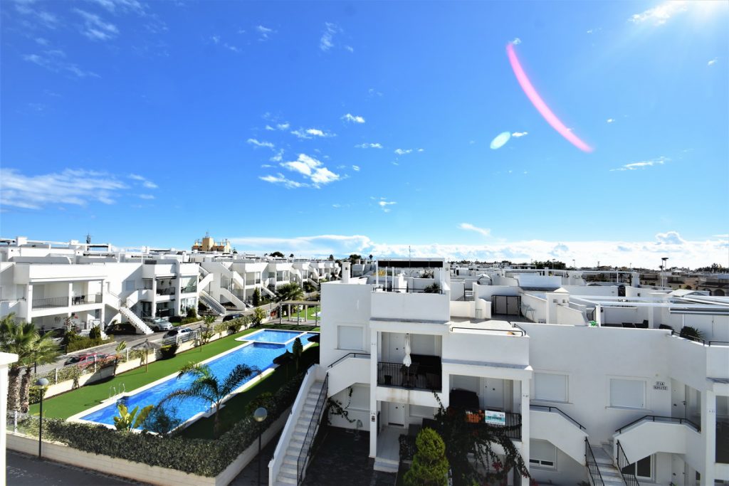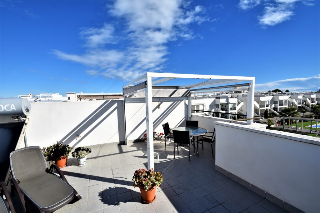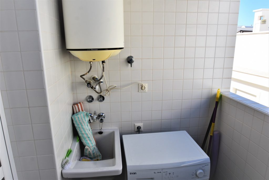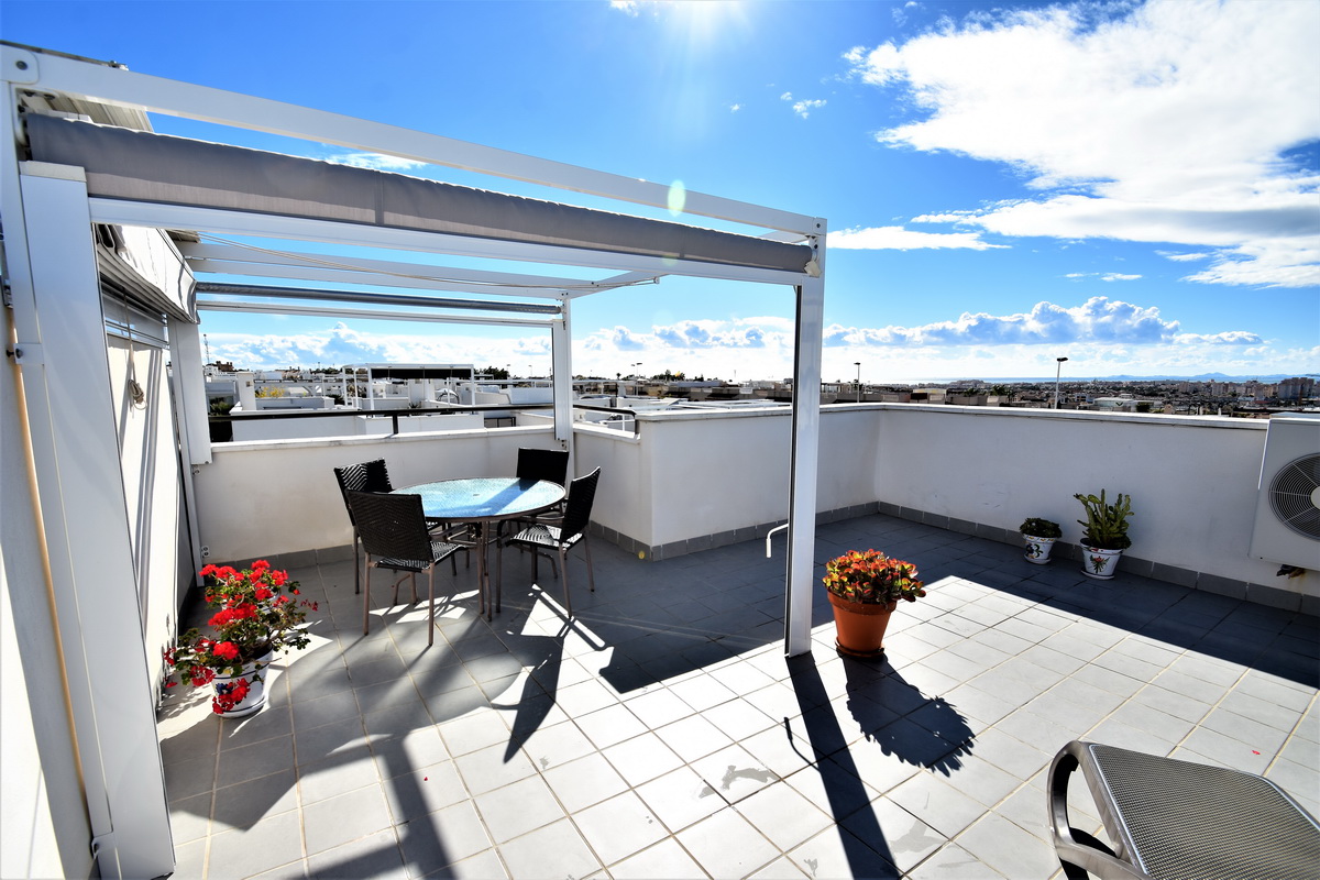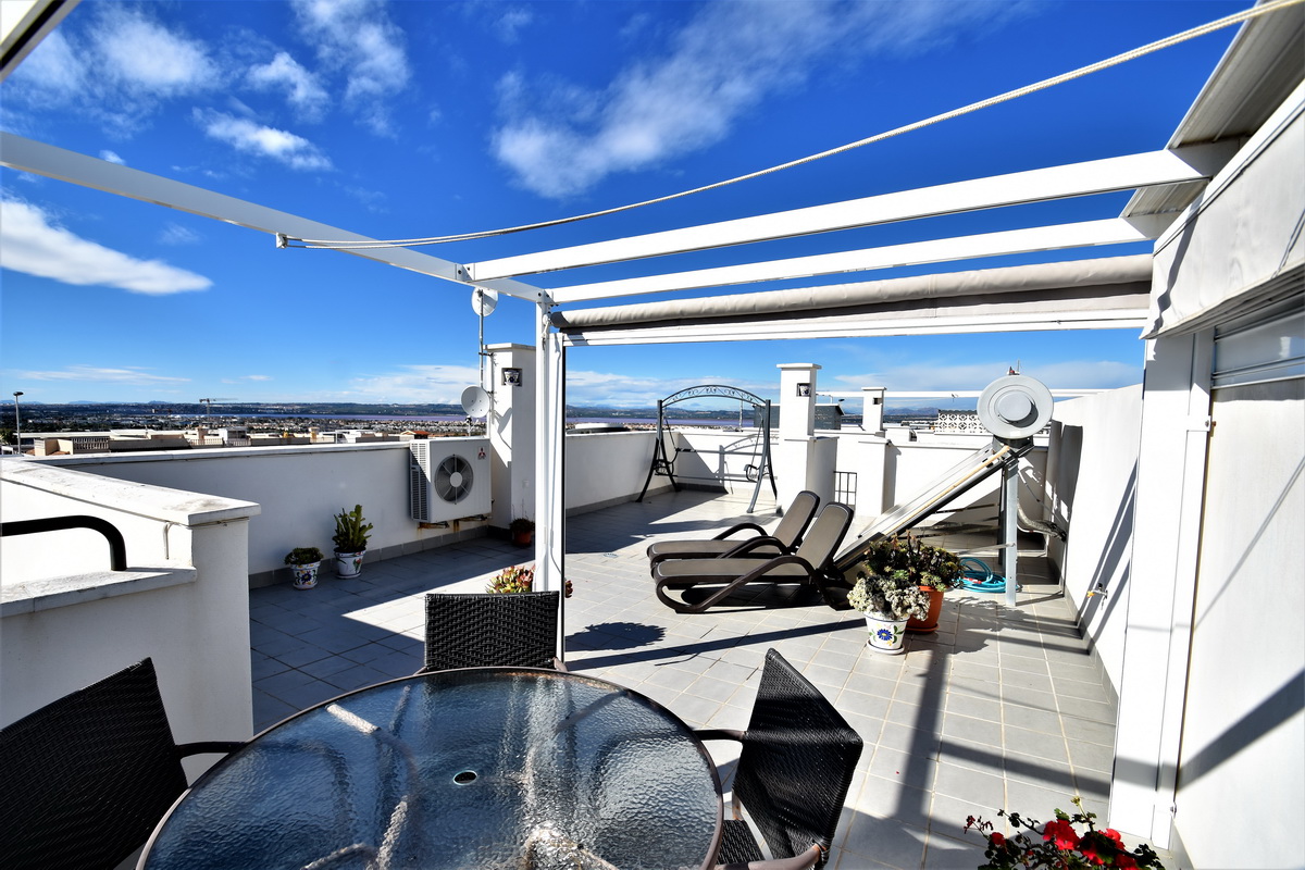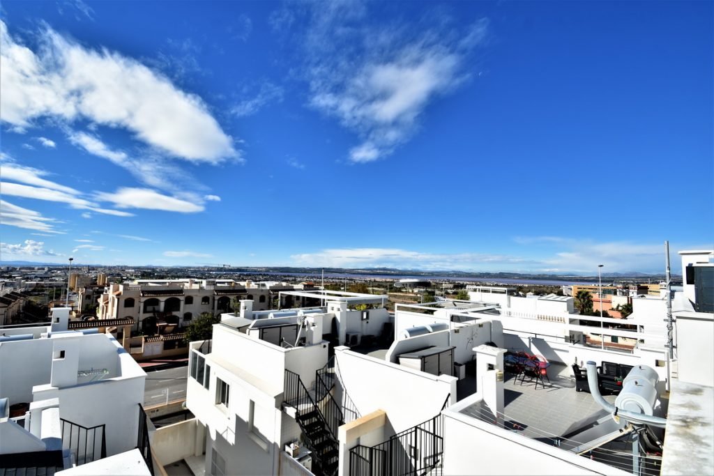 Utrolig fin leilighet på 60 m2 med en romslig takterrasse og fantastisk utsikt over Torrevieja og saltsjøen. Leiligheten fremstår som ny og inneholder 2 soverom og 1 bad. Romslig stue med åpen løsning mot spisestuen og kjøkkenet.