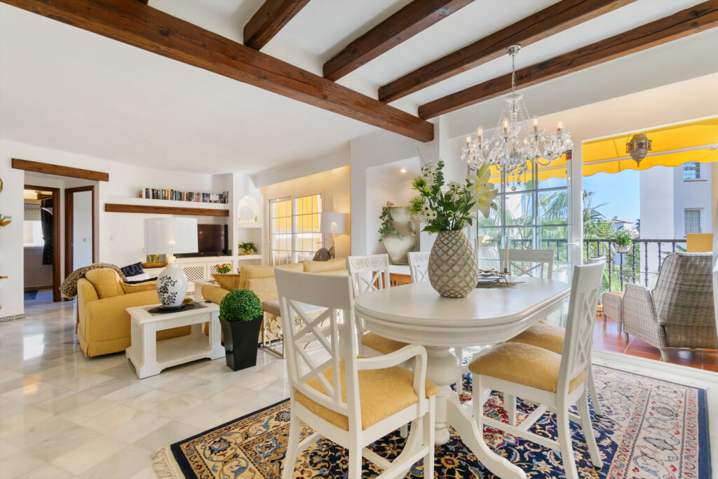 Meget sentralt beliggendet i det etablerte og populære området Aldea del Mar som er oppført i særegen arkitektur. Det er bygget i spansk-marokkansk stil og dekorert tilsvarende.