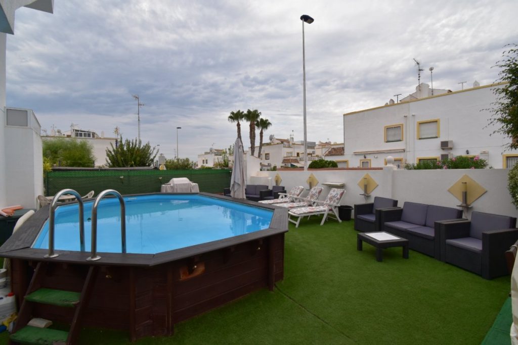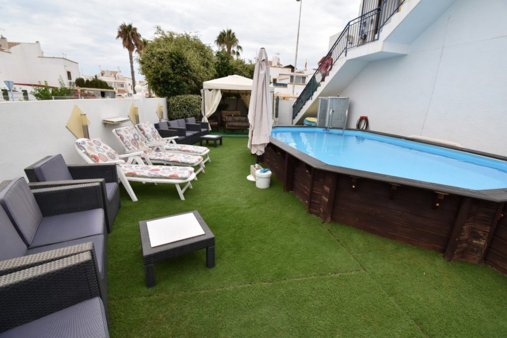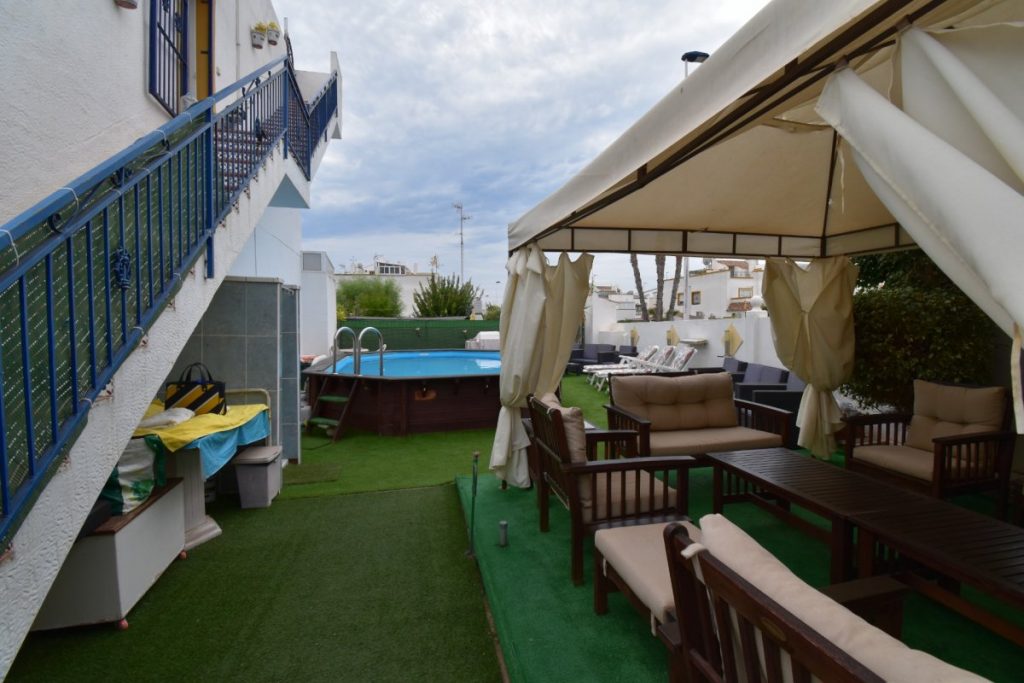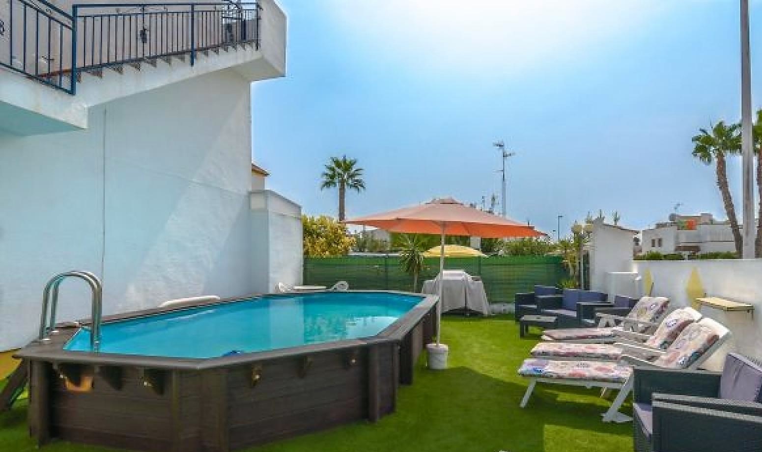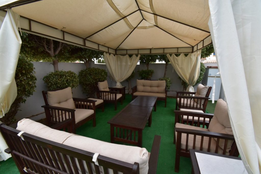 Romslig hage med et privat svømmebasseng og pergolaområde. God plass til flere sittegrupper og solsenger. Perfekt for å slappe av og nyte det gode været i Torrevieja.