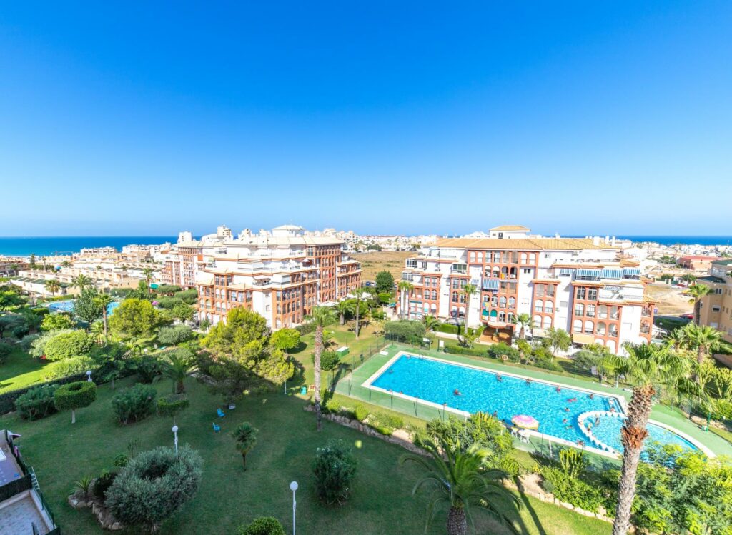 Leiligheten ligger i Torremarina i Aguas Nuevas, rett nord for Torrevieja sentrum. Veldig populært område på grunn av den sentrale beliggenheten og nærheten til havet. Det er kort vei til den kjente La Mata stranden som er en av Costa Blanca’s beste strender.