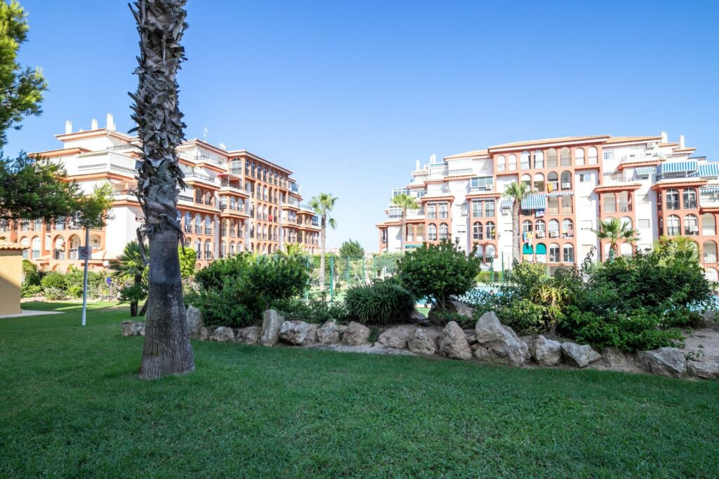 Det er god bussforbindelse til både sentrum av Torrevieja og til La Mata. Det er en hyggelig spasertur langes promenaden på omkring 45 minutter til Torrevieja sentrum. Dette er et flott område både for ferieturister og fastboende.