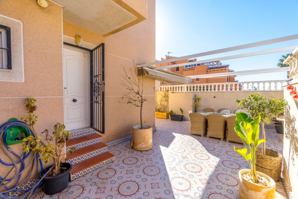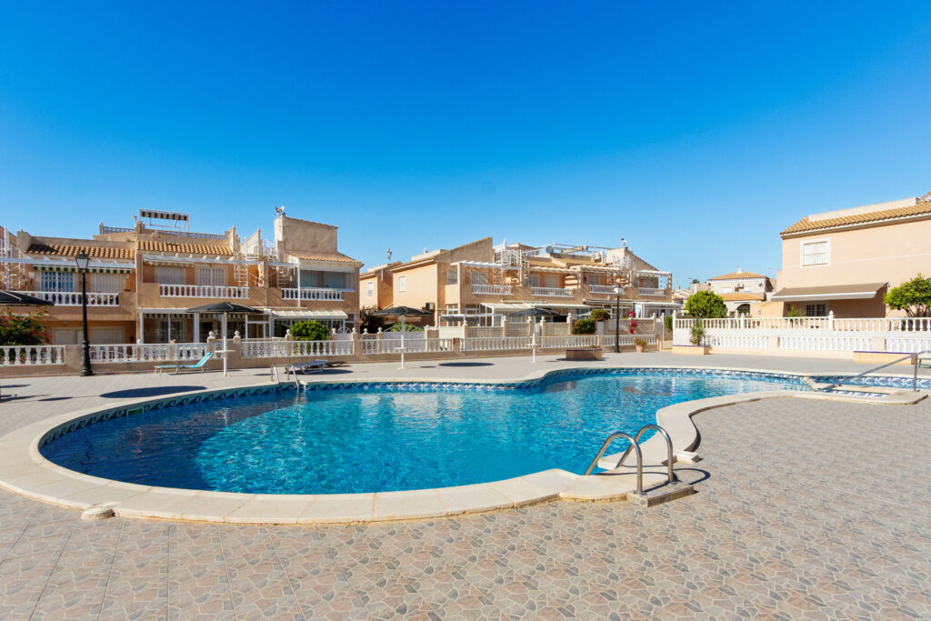 Eiendommen har en attraktiv beliggenhet i området Aguas Nuevas i Torrevieja. Her har du kort vei inn til sentrum, til flotte tur- og friluftsområder som kan benyttes sommer som vinter og til stranden. Aguas Nuevas ligger nord i Torrevieja, mellom sentrum og La Mata stranden.