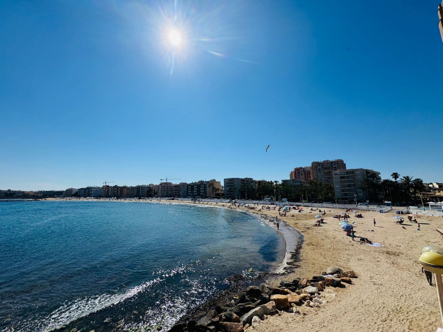 Tenk deg å våkne opp til lyden av bølgene og gå rett ut på Los Locos-stranden fra din egen private inngang. Denne eksepsjonelle hjørneleiligheten har en perfekt beliggenhet i første rekke på en av Torreviejas mest ikoniske strender, og tilbyr uforstyrret utsikt over Middelhavet og en uslåelig blanding av stil, komfort og beliggenhet.