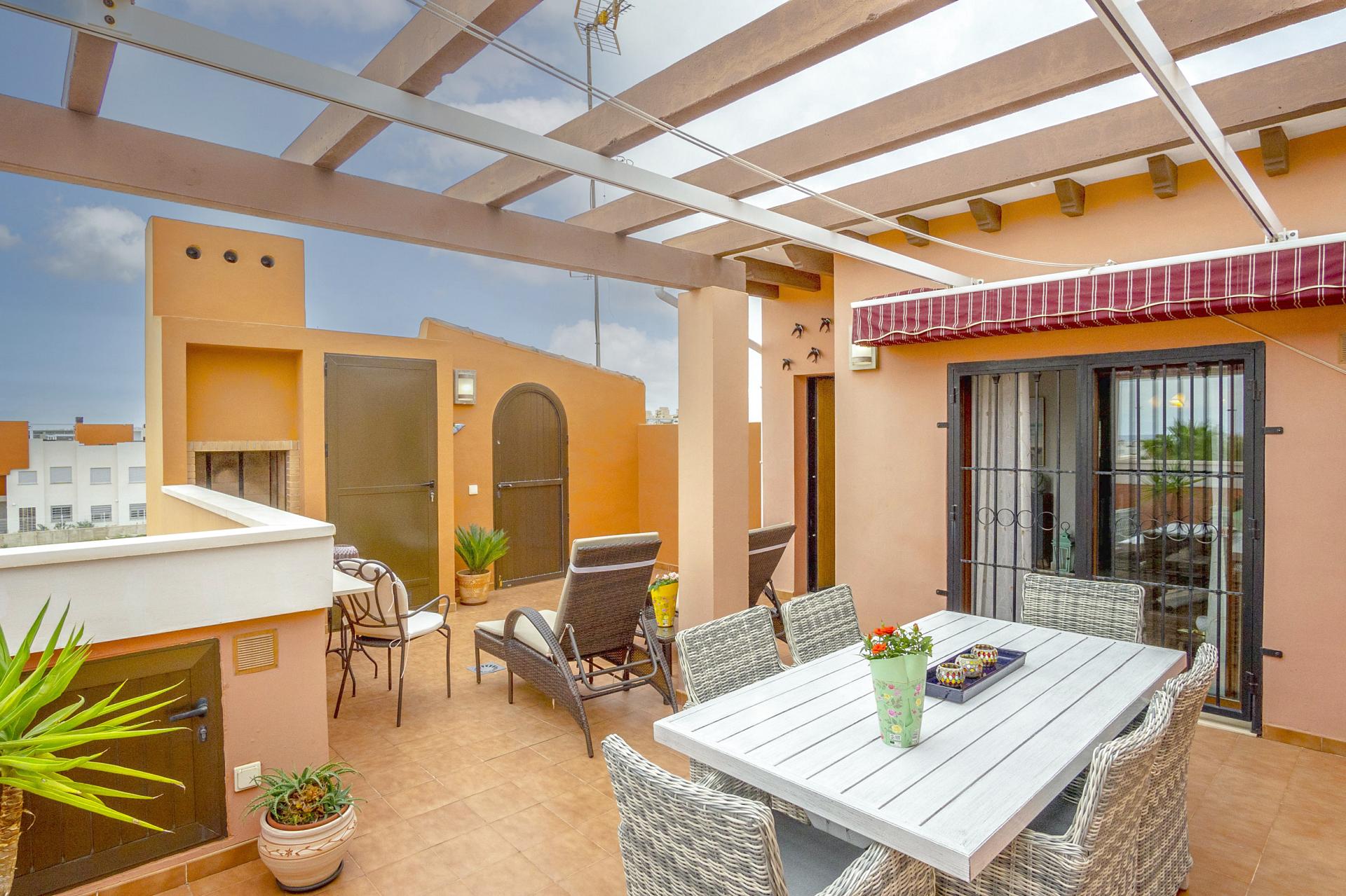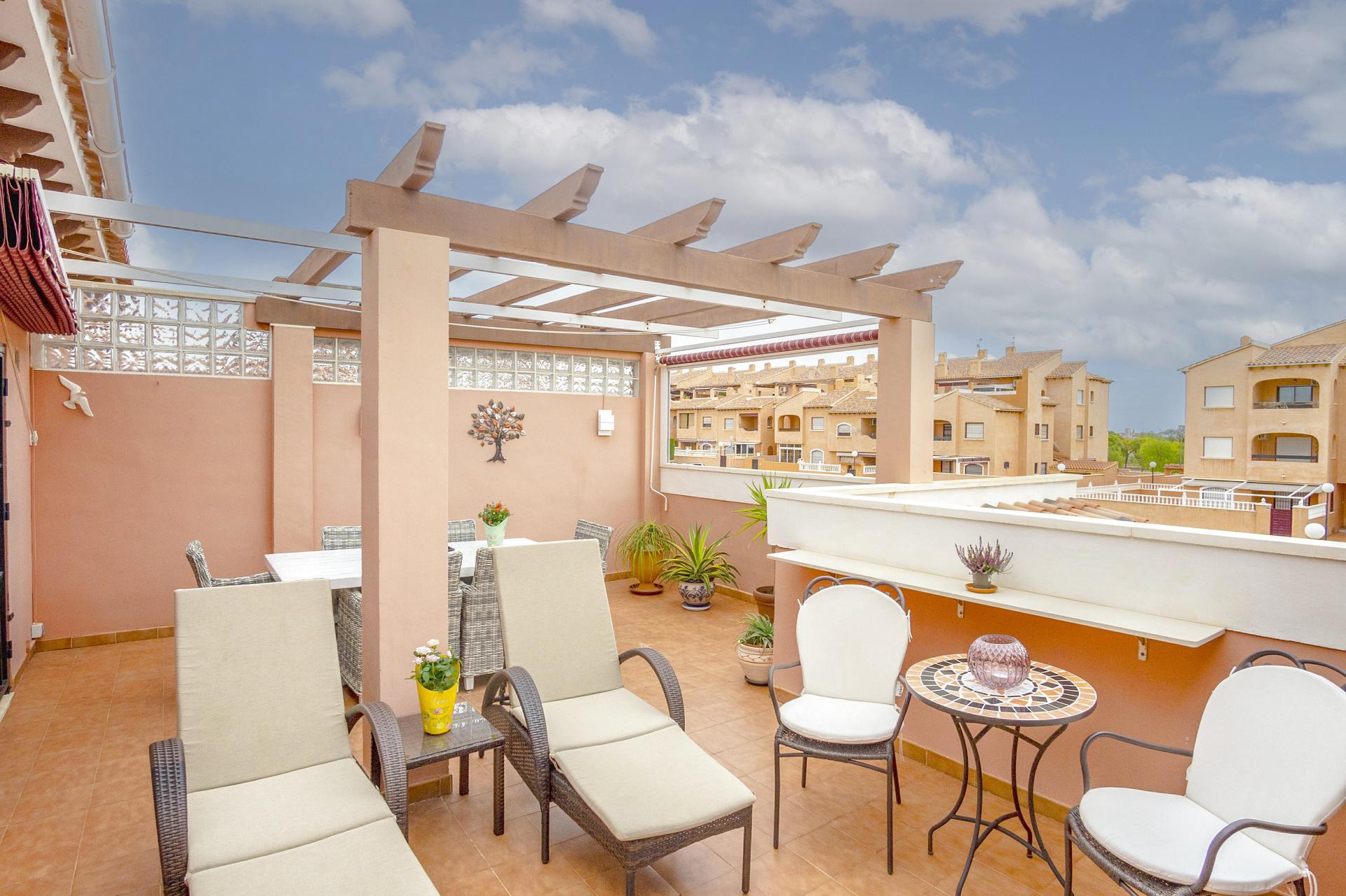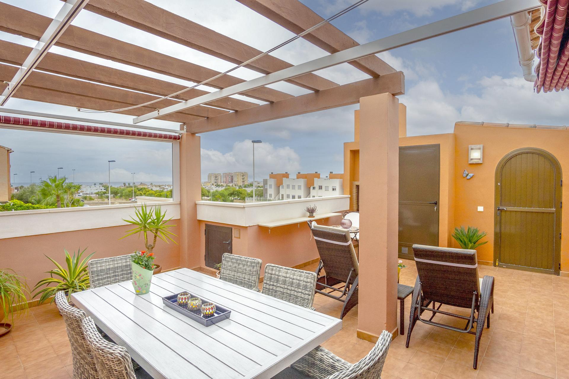 Dette er en flott og solrik bolig, som ligger i den populære urbanisasjonen Altos del Sol i Aguas Nuevas i Torrevieja.
