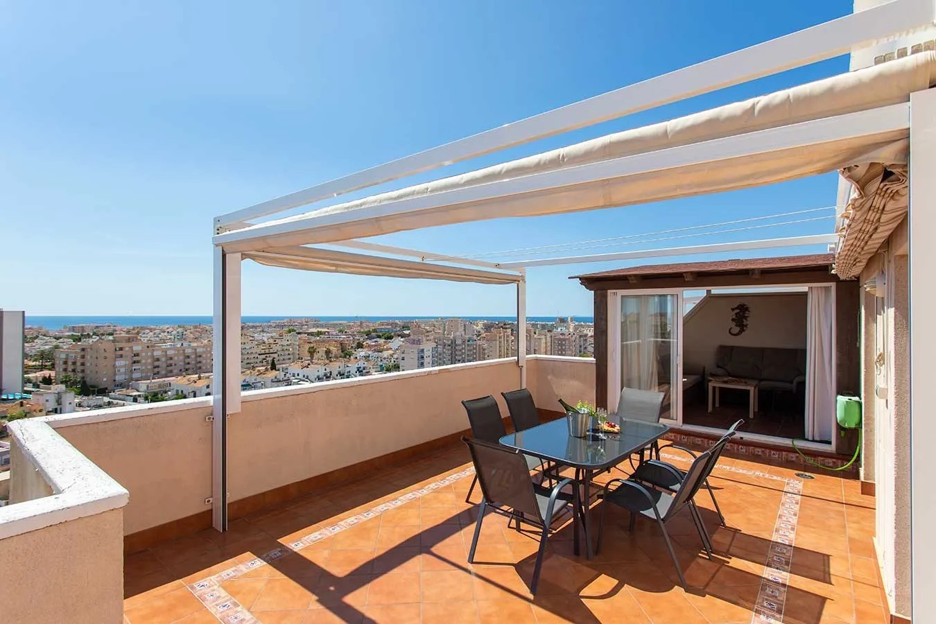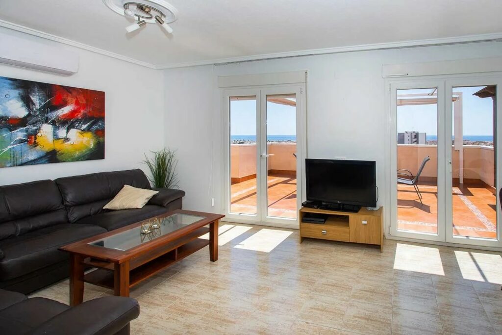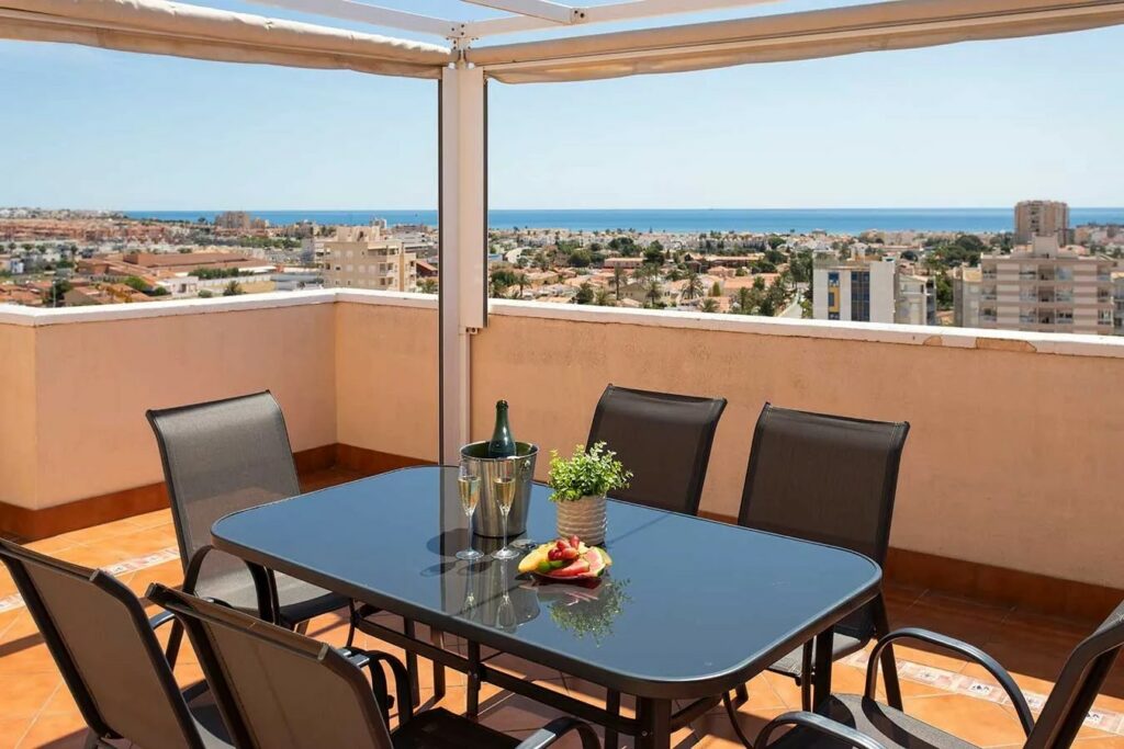 *SOLGT* Torrevieja- Tiltalende toppleilighet med stor terrasse og havutsikt. Felles bassengområde.
