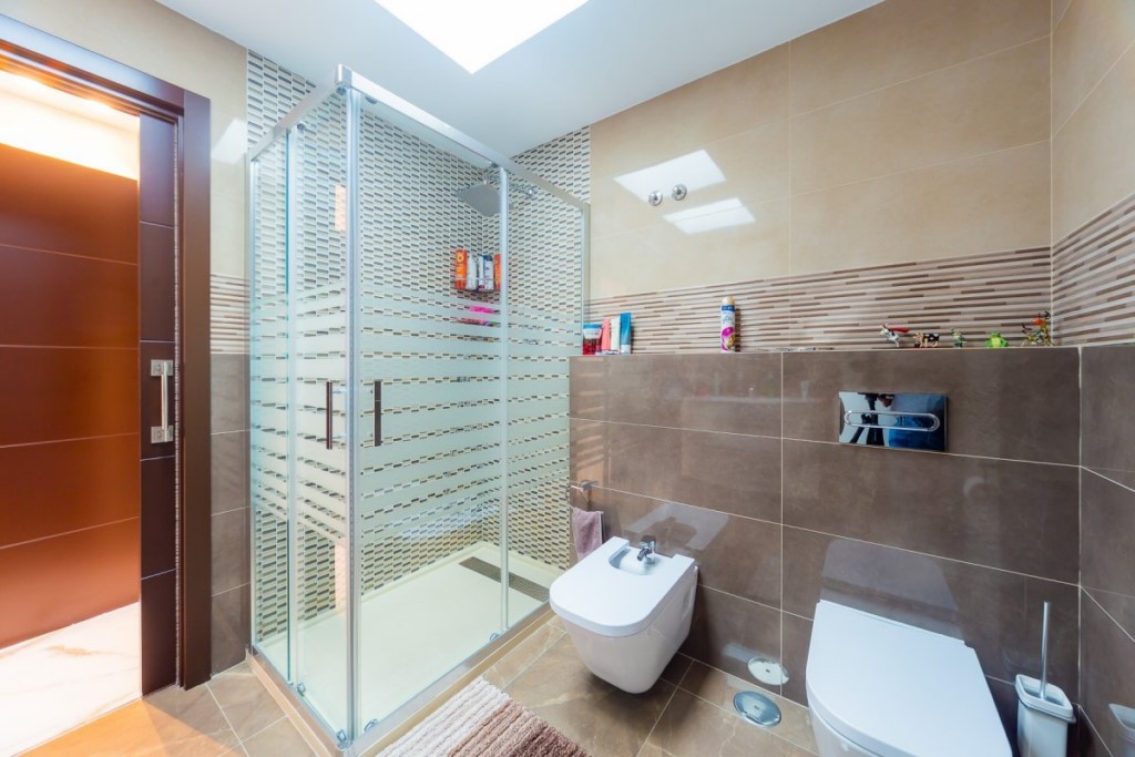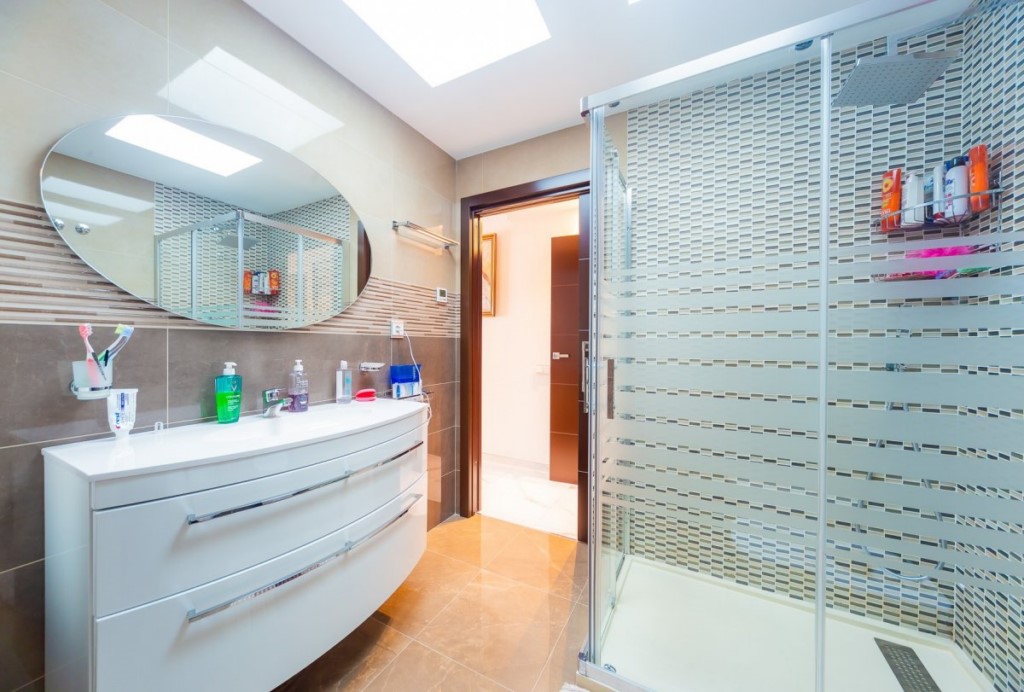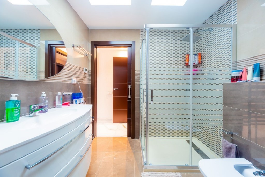 Moderne toppleilighet på ca 92 m2 med 2 store soverom med garderobeskap, 2 moderne bad, kjøkken med hvitevarer, spisestue og stue.