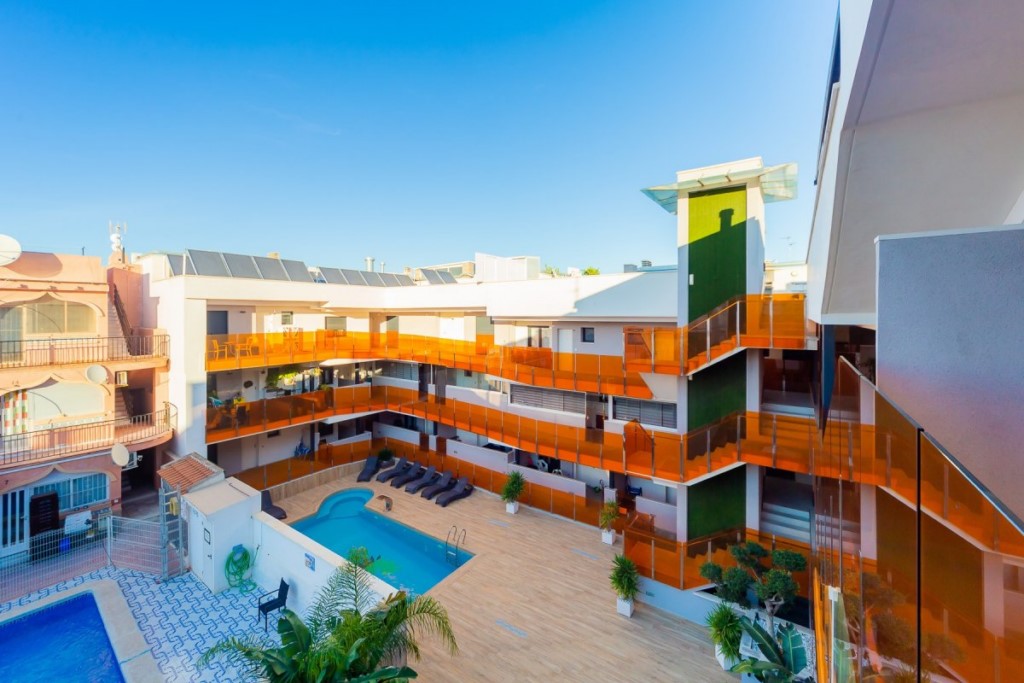 Meget sentral beliggenhet i Torrevieja kun 700 meter fra Playa de los Locos og Playa del Cura. Boligen ligger i byen, men likevel i et rolig strøk. Området er populært på grunn av nærheten til sentrum og til havet. Dette er et etablert område som lever hele året og det finnes alt du måtte trenge av fasiliteter i gangavstand fra boligen, som lokale hyggelige barer og restauranter, og ikke minst den flotte strandpromenaden. Matbutikk ligger like ved.