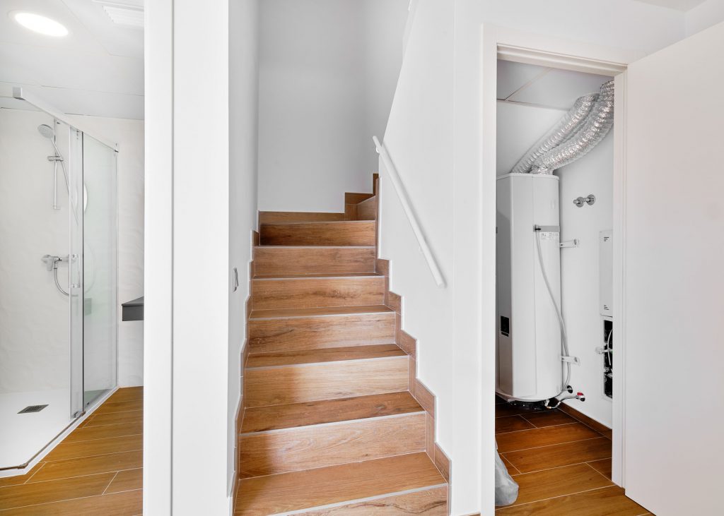 3 eller 4 soverom og 3 bad, 130 – 141 m2 bolig, 32 – 45 m2 hage, 52 m2 takterrasse, pris fra: 290.000 euro + omkostninger.