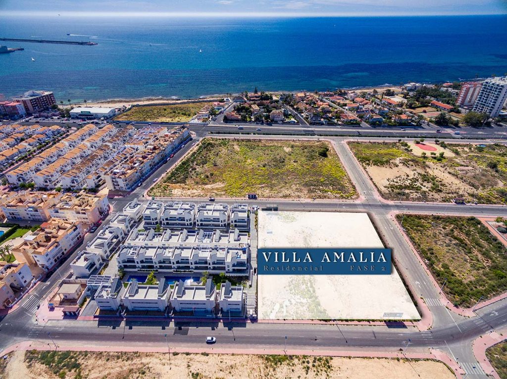 Prosjektet heter Residencial Villa Amalia og det ligger rett ved La Veleta som er et eksklusivt område sør i Torrevieja. Et rolig område rett ved havet som lever hele året. Det er gangavstand til flere supermarkeder samt barer og restauranter. Det er en flott spasertur inn til Torrevieja sentrum langs havet, strendene og promenaden. Området bærer preg av en eksklusiv bebyggelse med høy standard. Boligen omgis av flotte turområder, en sjarmerende palmestrand og ikke minst grønne frodige parker.
