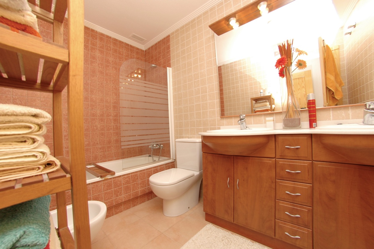 Denne fine boligen har 2 store soverom med garderober, 2 bad – et med dusj og et med badekar. Kjøkkenet som er fullt utstyrt har åpen planløsning ut mot den romslige stuen. Boligen har klimaanlegg.