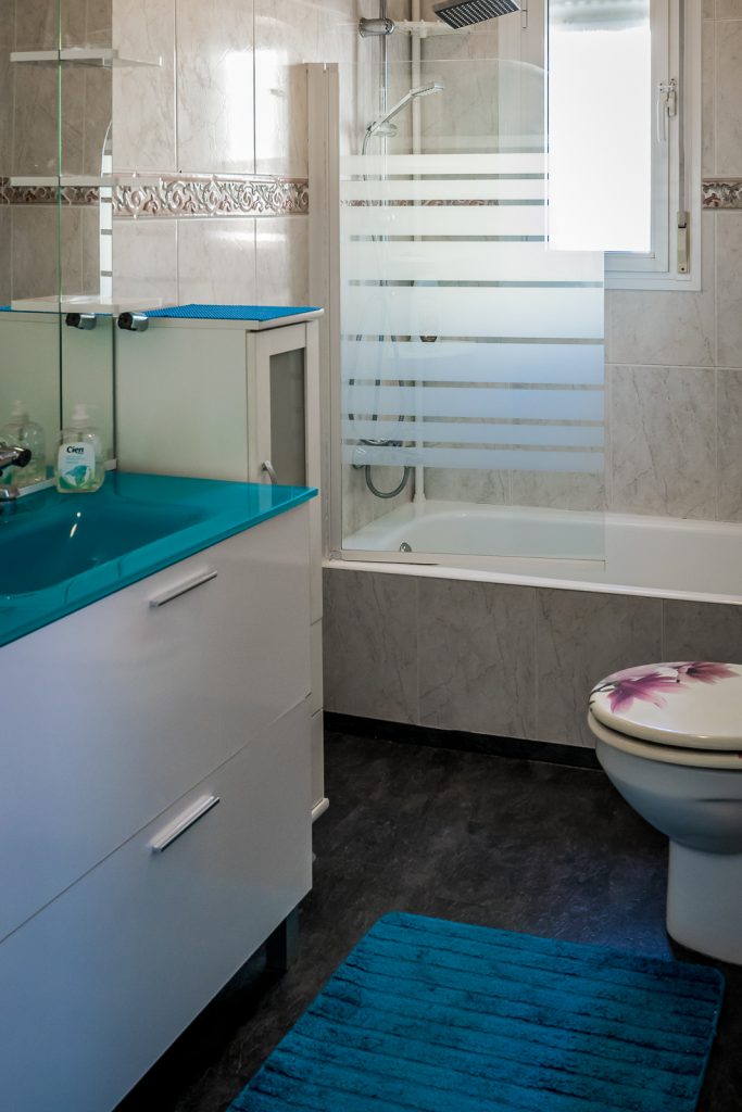 Boligen har 3 soverom, 2 komplette bad, kjøkken og stue, alt på ett plan.