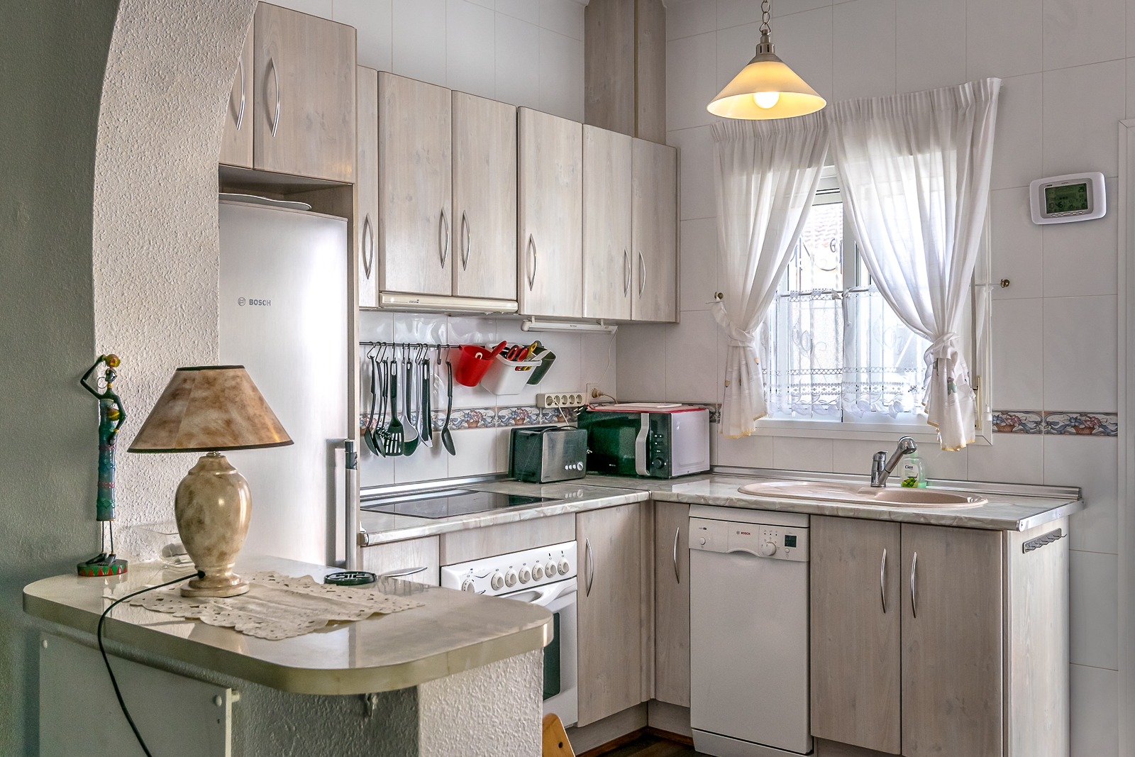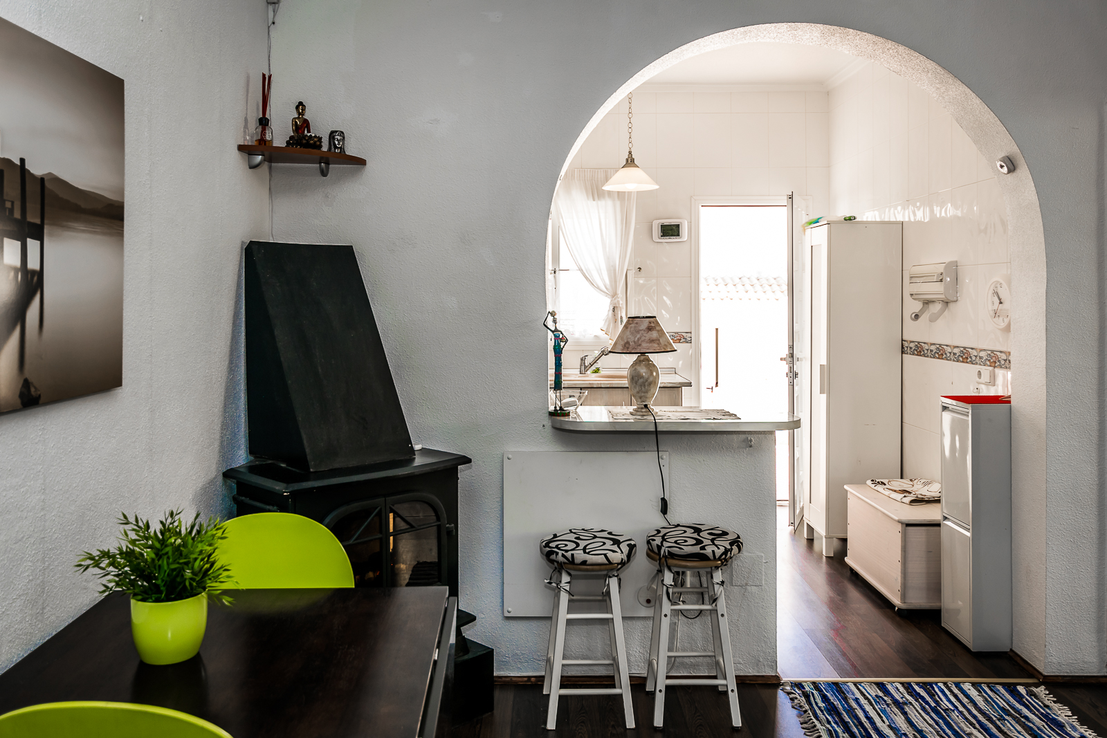 Kjøkkenet er fullt utstyrt og har åpen løsning mot stuen, det er også direkte utgang til hagen.