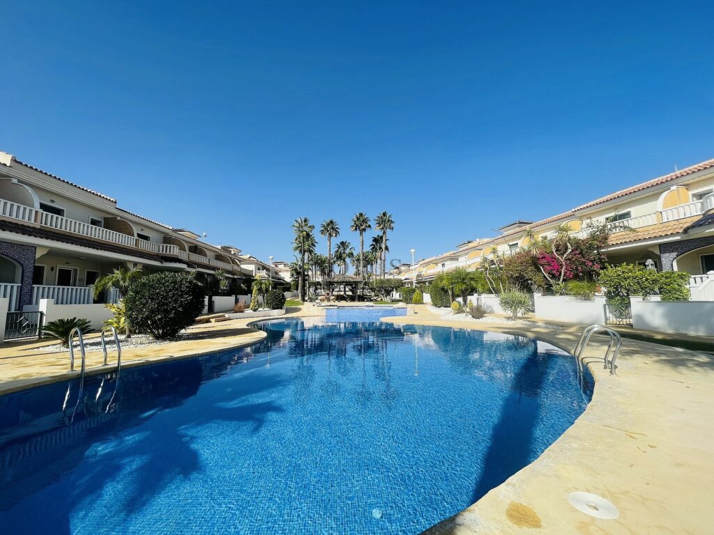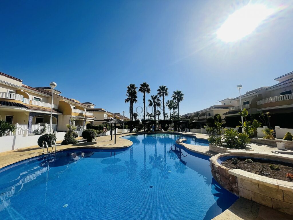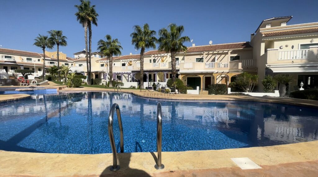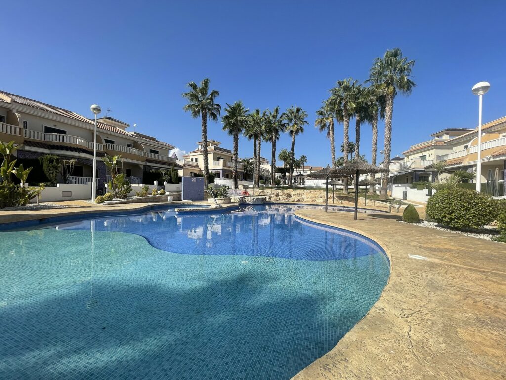 Hjertelig velkommen til den fine Residencial Albamar i Ciudad Quesada med sine imponerende bassenger og til dette fine gjennomgående sørvendte rekkehuset.