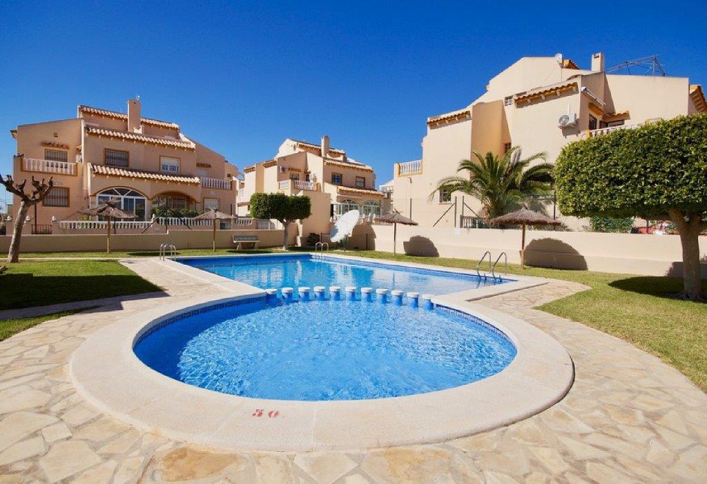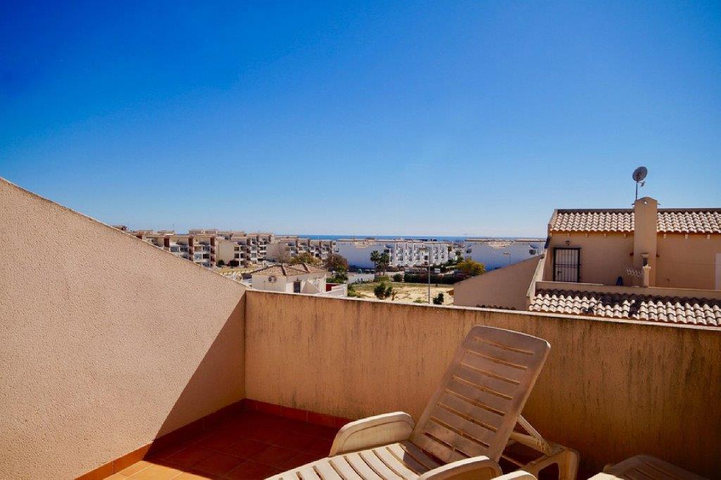Nydelig hjørnehus i idylliske Urb. Perla del Mar IV, med lettstelt hage og takterrasse med utsikt over Middelhavet.
