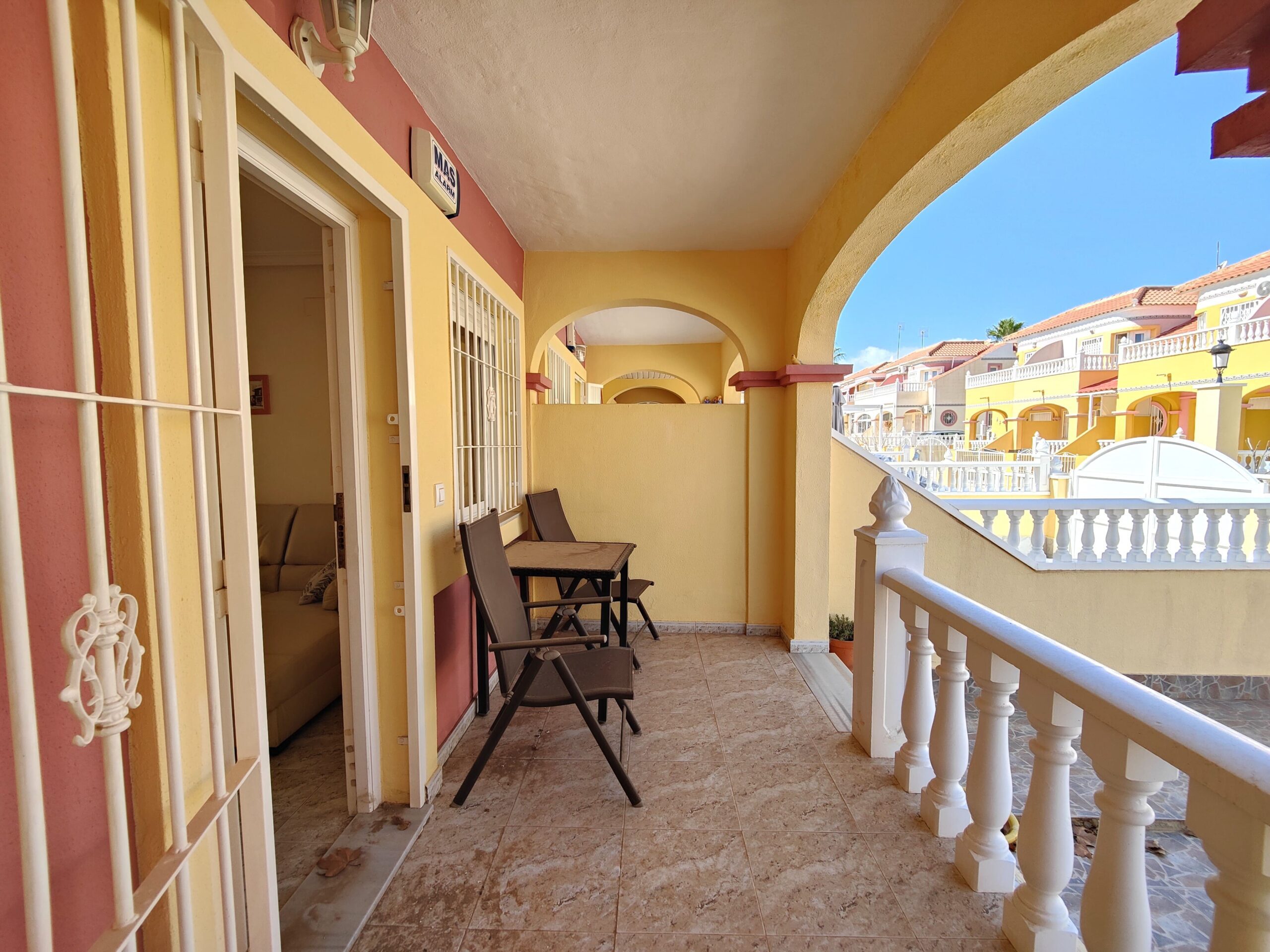 Boligen ligger i en hyggelig lukket urbanisasjon med automatisk port, 2 felles bassenger og grøntområder.