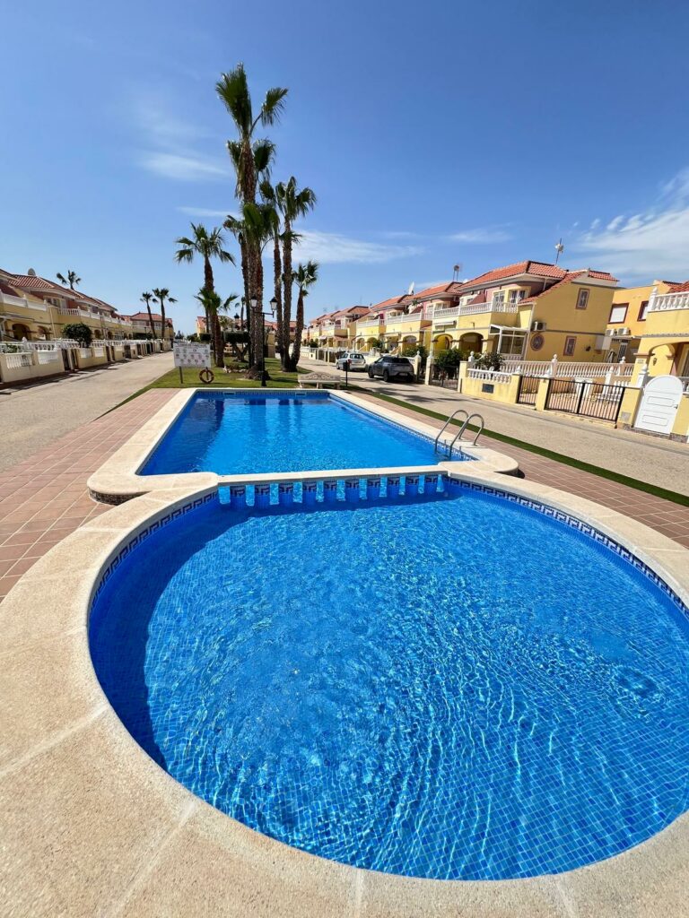 Rekkehus med hage, bakgård, 2 soverom, 1 bad, 1 toalett og 2 felles bassengområder i La Regia – Orihuela Costa