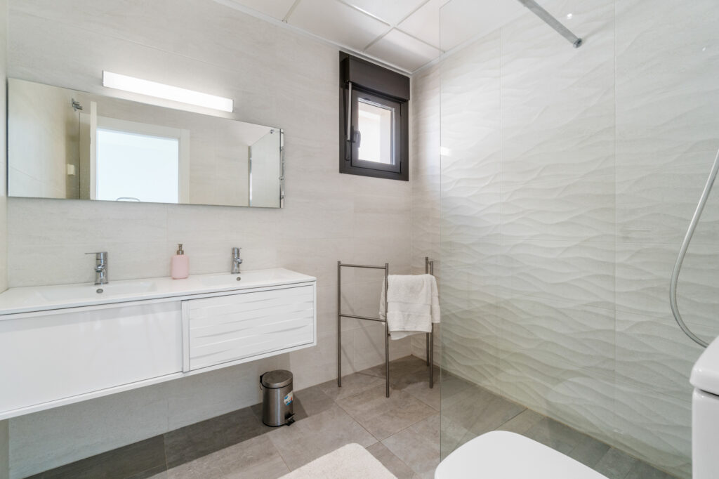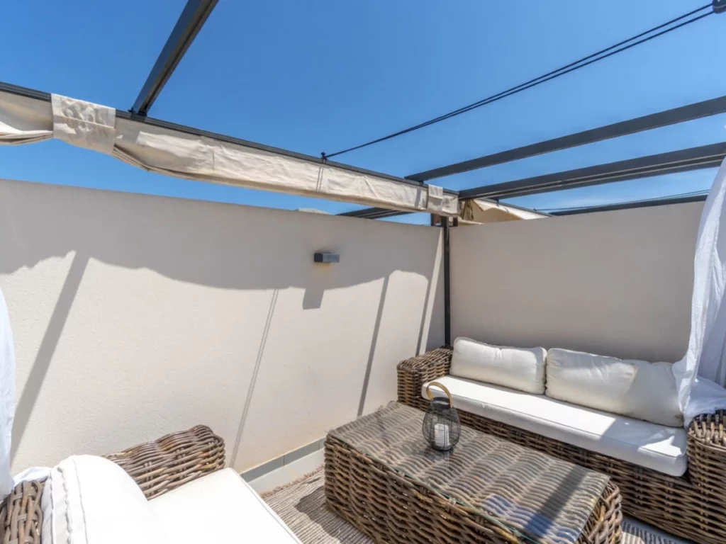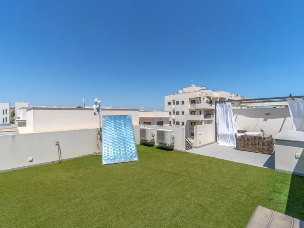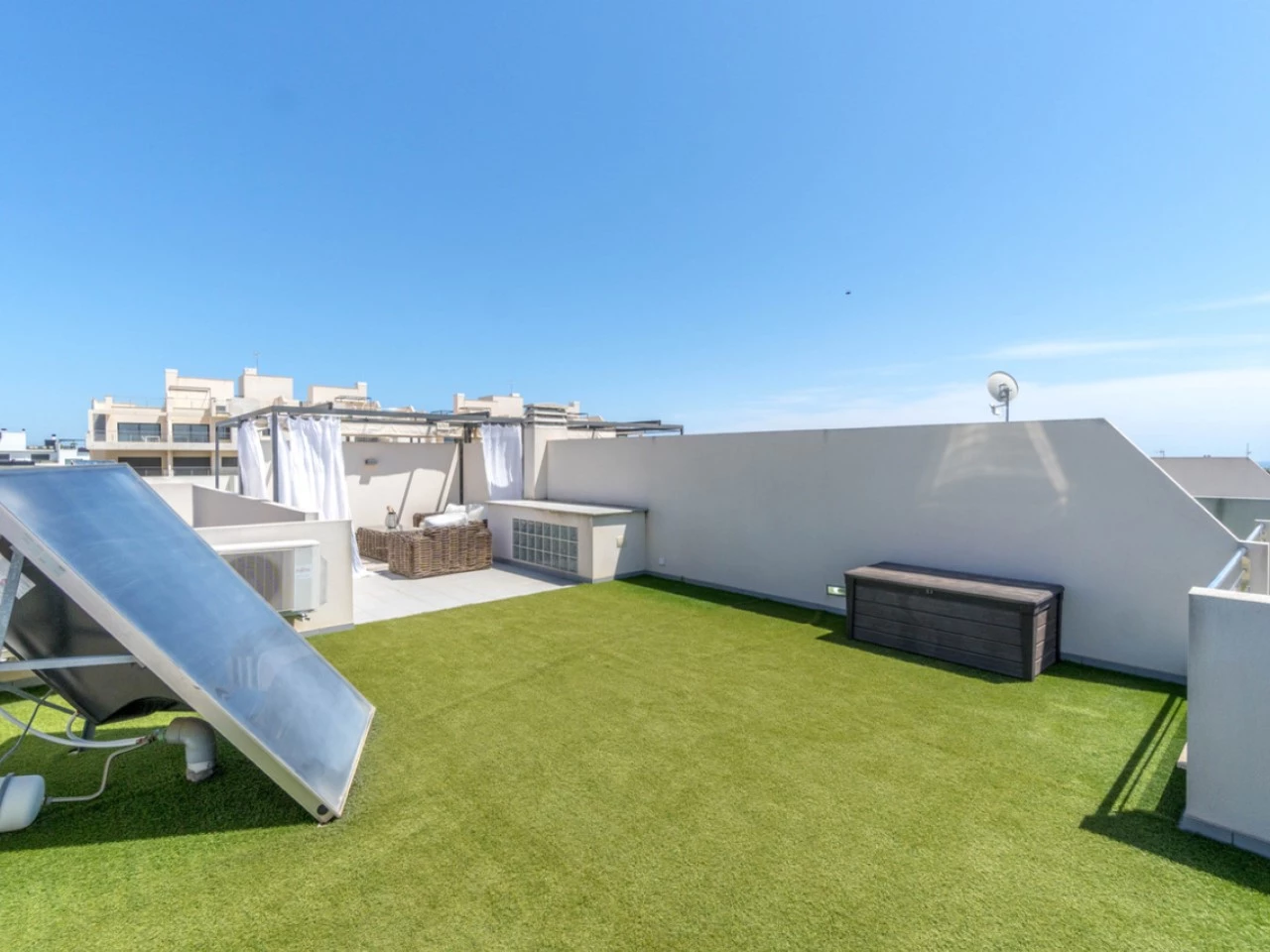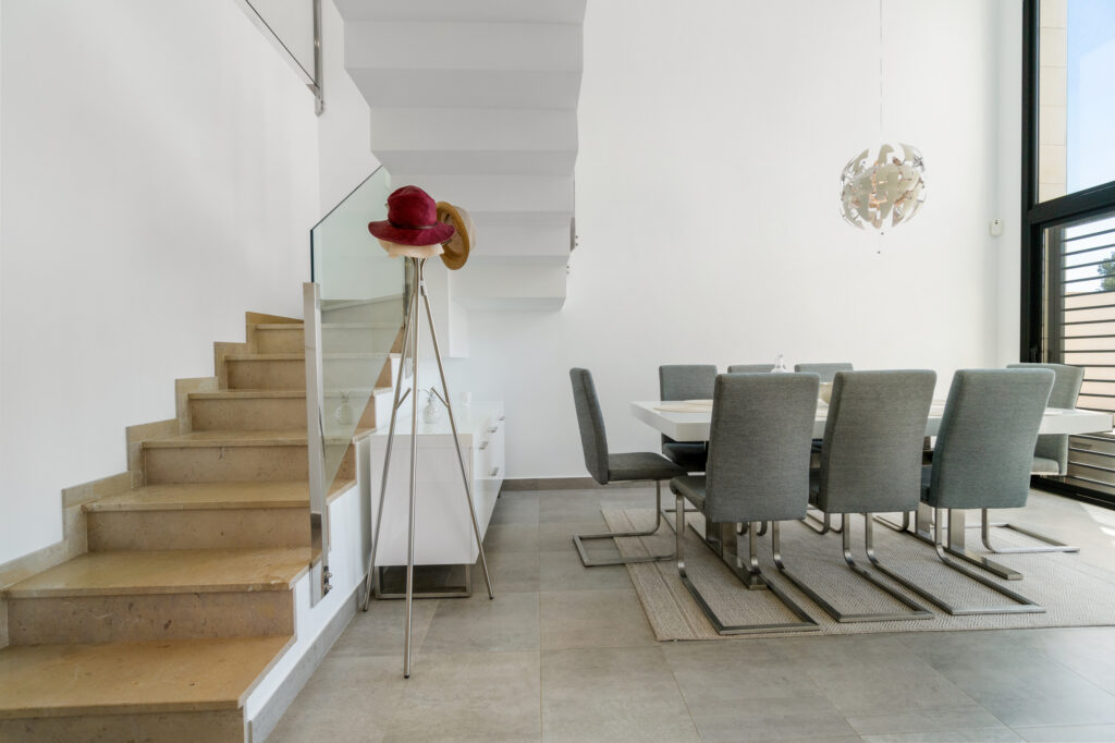 Huset har to etasjer samt stor takterrasse med utsikt over grøntområder og Middelhavet.
